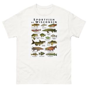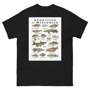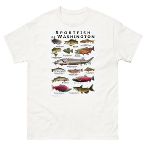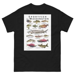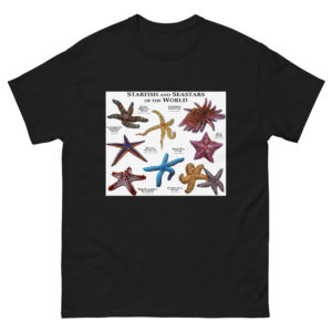 Fine art illustration of various species of starfish and seastars printed on a high-quality, 100% cotton men's t-shirt