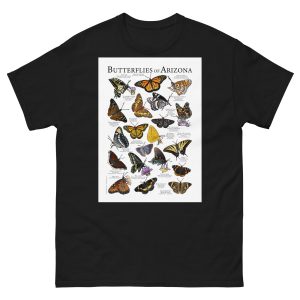 There are about 17,500 species of butterflies in the world, and around 750 species in the United States. This artwork features high-quality illustrations of the various species of butterfly native to the state of Arizona in the USA. The image is printed on a high-quality 100% men's cotton t-shirt.
