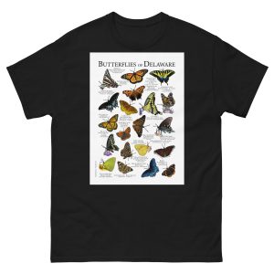 There are about 17,500 species of butterflies in the world, and around 750 species in the United States. This artwork features high-quality illustrations of the various species of butterfly native to the state of Delaware in the USA. The image is printed on a high-quality 100% men's cotton t-shirt.