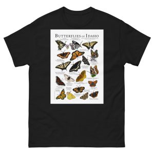 There are about 17,500 species of butterflies in the world, and around 750 species in the United States. This artwork features high-quality illustrations of the various species of butterfly native to the state of Idaho in the USA. The image is printed on a high-quality 100% men's cotton t-shirt.
