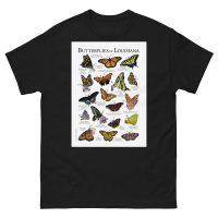 There are about 17,500 species of butterflies in the world, and around 750 species in the United States. This artwork features high-quality illustrations of the various species of butterfly native to the state of Louisiana in the USA. The image is printed on a high-quality 100% men's cotton t-shirt.