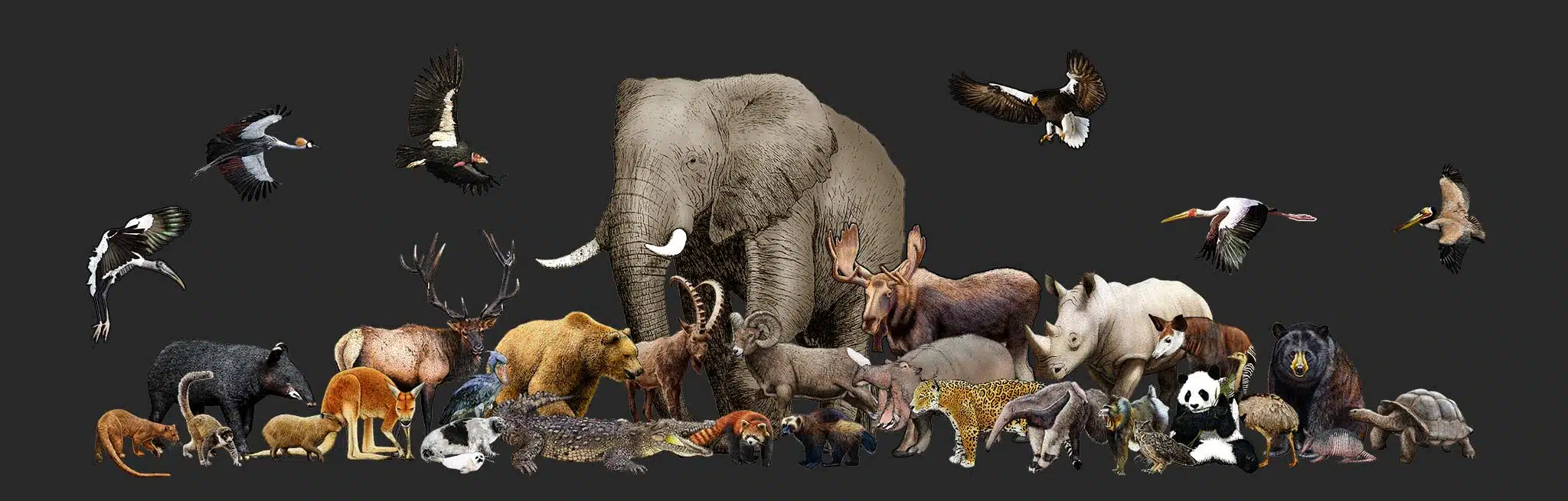 The posters feature hundreds of different types of wildlife; mammals, birds, amphibians, reptiles, invertebrates, marine animals and many others. The images are expertly rendered and displayed with both common and scientific names to accompany them. Posters are shipped in a sturdy 2″ mailing tube with plastic endcaps. Artwork can be signed by the artist or otherwise customized on request.