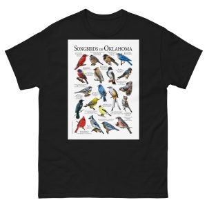 Songbirds - also known as the passerine birds - are any member of the suborder Passeri (or Oscines), of the order Passeriformes. The group including about 4,000 species in 35-55 families, which is nearly half the world’s birds. This artwork features high-quality illustrations of the various species of songbird native to the state of Oklahoma in the USA. The image is printed on a high-quality 100% men's cotton t-shirt.
