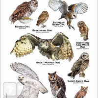 AMERICAN BARN OWL (Tyto furcata) • BARRED OWL (Strix varia) • BURROWING OWL (Athene cunicularia) • EASTERN SCREECH OWL (Megascops asio) • GREAT-HORNED OWL (Bubo virginianus) • LONG-EARED OWL (Asio otus) • NORTHERN SAW WHET OWL (Aegolius acadicus) • SHORT-EARED OWL (Asio flammeus) • SNOWY OWL (Bubo scandiacus)