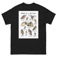 The state of Utah in North America has eleven native species of owl. They’re all here on this unisex classic tee. Each owl is drawn beautifully and with amazing scientific accuracy.
