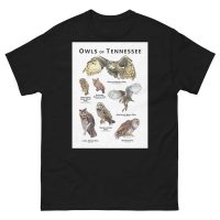 The state of Tennessee in North America has seven native species of owl. They’re all here on this unisex classic tee. Each owl is drawn beautifully and with amazing scientific accuracy.