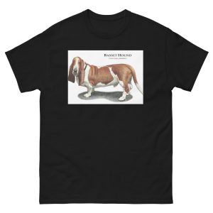 The Basset Hound is a short, stocky member of the Hound family of dogs. They are excellent scent hounds, and were selectively breed for the express purpose of tracking rabbit and other small game. The name "Basset" is derived from a French word meaning "low." The breed was developed in England and France where wealthy landowners would use them on hunts. They are of course noted for their loose fitting, dropping skin, and long ears - which are useful in directing scents into the basset's highly sensitive noses. Bassets usually come in bicolor or tricolor, with brown, black and white. They are very friendly, low maintenance dogs that are good with children making them extremely popular as house pets. The poster is printed on matte, museum-quality paper with Giclée printing quality: • Paper thickness: 10.3 mil • Paper weight: 5.6 oz/y² (192 g/m²) • Opacity: 94% Buy a Digital Download