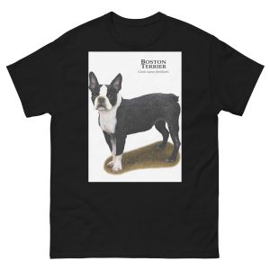 The Boston Terrier is a breed of dog developed in the United States. It is sometimes called the "American Gentleman" and is an officially recognized breed by the American Kennel Club, and has been since 1893. It is believed that the dog's heritage can be traced back to a man named Robert C. Hooper, who purchased a dog that was a mix of a Bull and Terrier. That dog's offspring was bred with French Bulldogs. Those dogs became very popular in the Boston area, and a group was formed called the American Bull Terrier Club. It was later changed to the Boston Terrier Club. The Boston Terrier was the first non-sporting dog bred in the US. It is highly intelligent, very trainable and affectionate, making it one of the most popular breeds in the US. The breed is the official dog of the state of Massachusetts. The poster is printed on matte, museum-quality paper with Giclée printing quality: • Paper thickness: 10.3 mil • Paper weight: 5.6 oz/y² (192 g/m²) • Opacity: 94% Buy a Digital Download