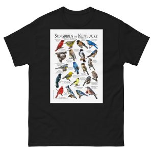 Songbirds - also known as the passerine birds - are any member of the suborder Passeri (or Oscines), of the order Passeriformes. The group including about 4,000 species in 35-55 families, which is nearly half the world’s birds. This artwork features high-quality illustrations of the various species of songbird native to the state of Kentucky in the USA. The image is printed on a high-quality 100% men's cotton t-shirt.