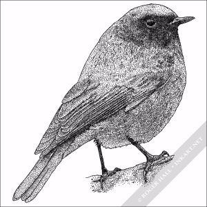 Fine art illustration of a Black Redstart (Phoenicurus ochruros.)