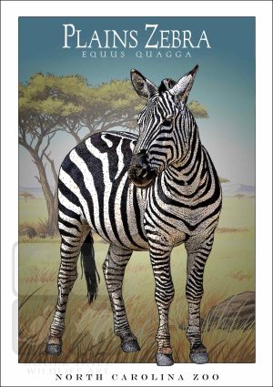 The Mountain Zebras is an endangered equine native to the mountain slopes, open grasslands, woodlands of south-western Angola, Namibia and South Africa. There are two known subspecies: the Harmann's Mountain Zebra and Cape Mountain Zebra (the drawing is of the Harmann's) but there is some discussion that these zebras should be considered to be separate species. These large horses have a body length (including heads) of 6.9 to 8.9 feet) (2.1 to 2.7 meters). Shoulder height ranges from 3.6-4.9 feet) (1.1 to 1.5 meters.) Weight is usually about 450-820 pounds (204 to 372 kilograms.) These animal were once common in their native areas, but due to habitat loss and poaching for their hides they are now considered vulnerable by conservation groups. The poster is printed on matte, museum-quality paper with Giclée printing quality: • Paper thickness: 10.3 mil • Paper weight: 5.6 oz/y² (192 g/m²) • Opacity: 94% Buy a Digital Download