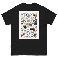 The state of Idaho is home to many amazing mammals. On this layout are many of them, including all genus currently living and native to the state printed on a high-quality 100% men's cotton t-shirt.