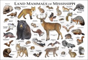 The state of Mississippi is home to many amazing mammals. On this poster-print are many of them, including all genus currently living and native to the state.