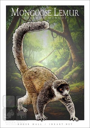 Fine art illustration of a Mongoose Lemur (Eulemur mongoz.)