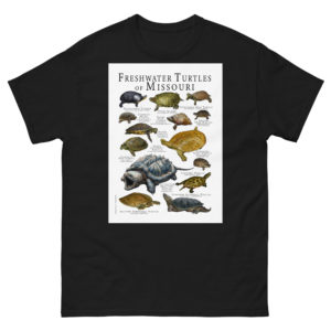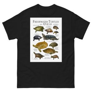 There are forty-nine species of turtles live in the United States and Canada, with the highest diversity in the Southeastern United States. This artwork features high-quality illustrations of the all freshwater turtles species native to the state of Massachusetts, printed in a high-quality men's cotton t-shirt.