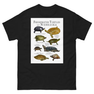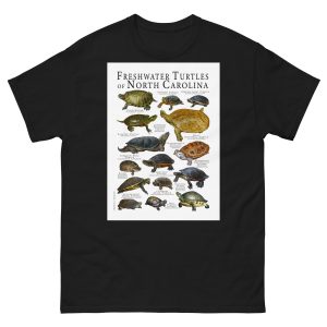 There are forty-nine species of turtles live in the United States and Canada, with the highest diversity in the Southeastern United States. This artwork features high-quality illustrations of the all freshwater turtles species native to the state of New Hampshire, printed in a high-quality men's cotton t-shirt.