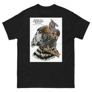 Fine art illustration of an Abyssinian Ground Hornbill (Bucorvus abyssinicus.) The image is printed on a high-quality 100% men's cotton t-shirt.