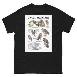 The state of Maryland in North America has eight native species of owl. They’re all here on this unisex classic tee. Each owl is drawn beautifully and with amazing scientific accuracy.