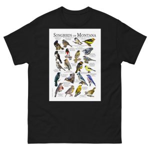 Songbirds - also known as the passerine birds - are any member of the suborder Passeri (or Oscines), of the order Passeriformes. The group including about 4,000 species in 35-55 families, which is nearly half the world’s birds. This artwork features high-quality illustrations of the various species of songbird native to the state of North Dakota in the USA. The image is printed on a high-quality 100% men's cotton t-shirt.