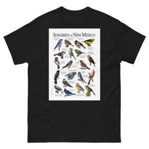 Songbirds - also known as the passerine birds - are any member of the suborder Passeri (or Oscines), of the order Passeriformes. The group including about 4,000 species in 35-55 families, which is nearly half the world’s birds. This artwork features high-quality illustrations of the various species of songbird native to the state of New Mexico in the USA. The image is printed on a high-quality 100% men's cotton t-shirt.