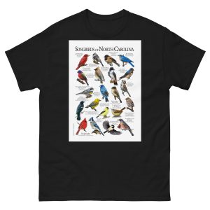 Songbirds - also known as the passerine birds - are any member of the suborder Passeri (or Oscines), of the order Passeriformes. The group including about 4,000 species in 35-55 families, which is nearly half the world’s birds. This artwork features high-quality illustrations of the various species of songbird native to the state of North Carolina in the USA. The image is printed on a high-quality 100% men's cotton t-shirt.