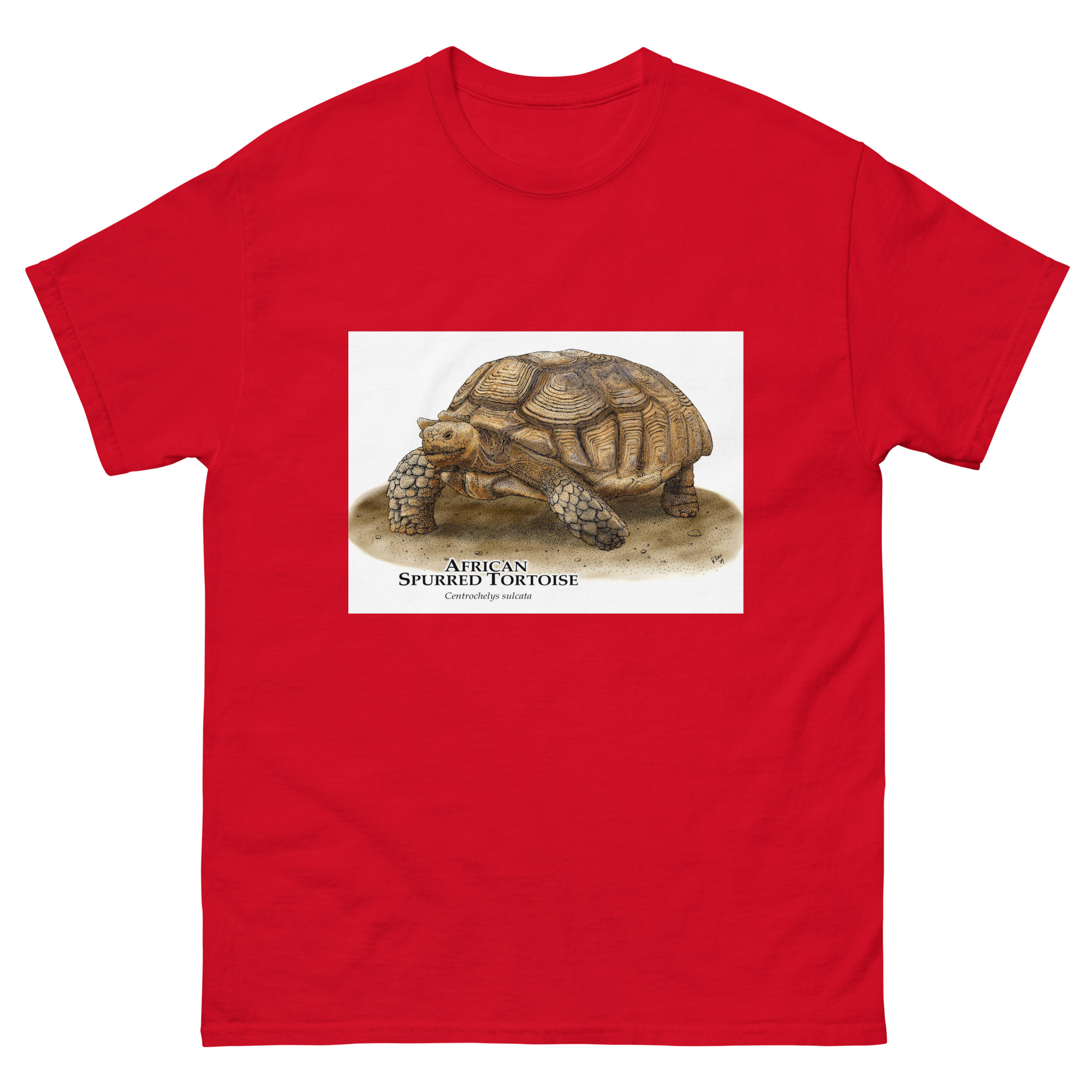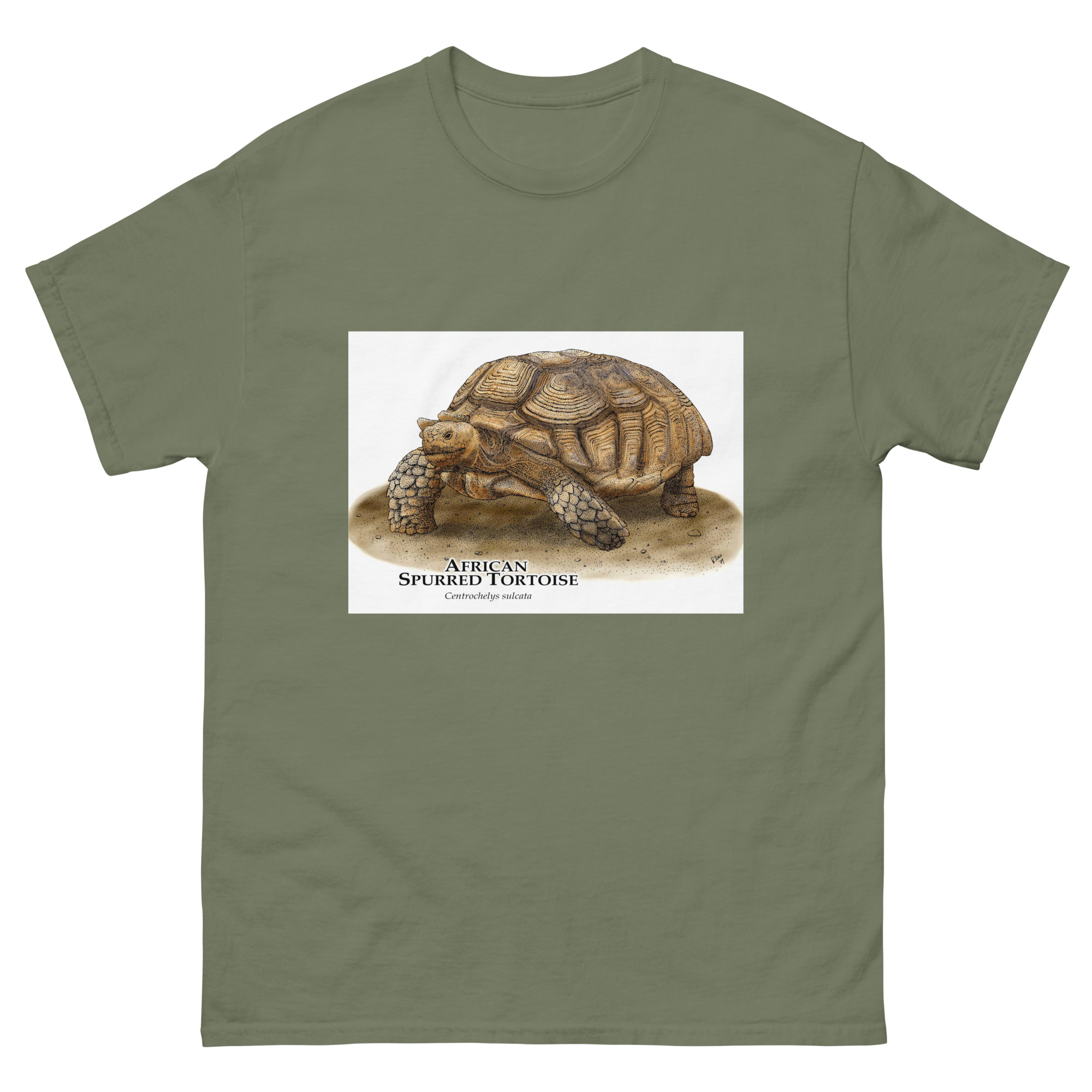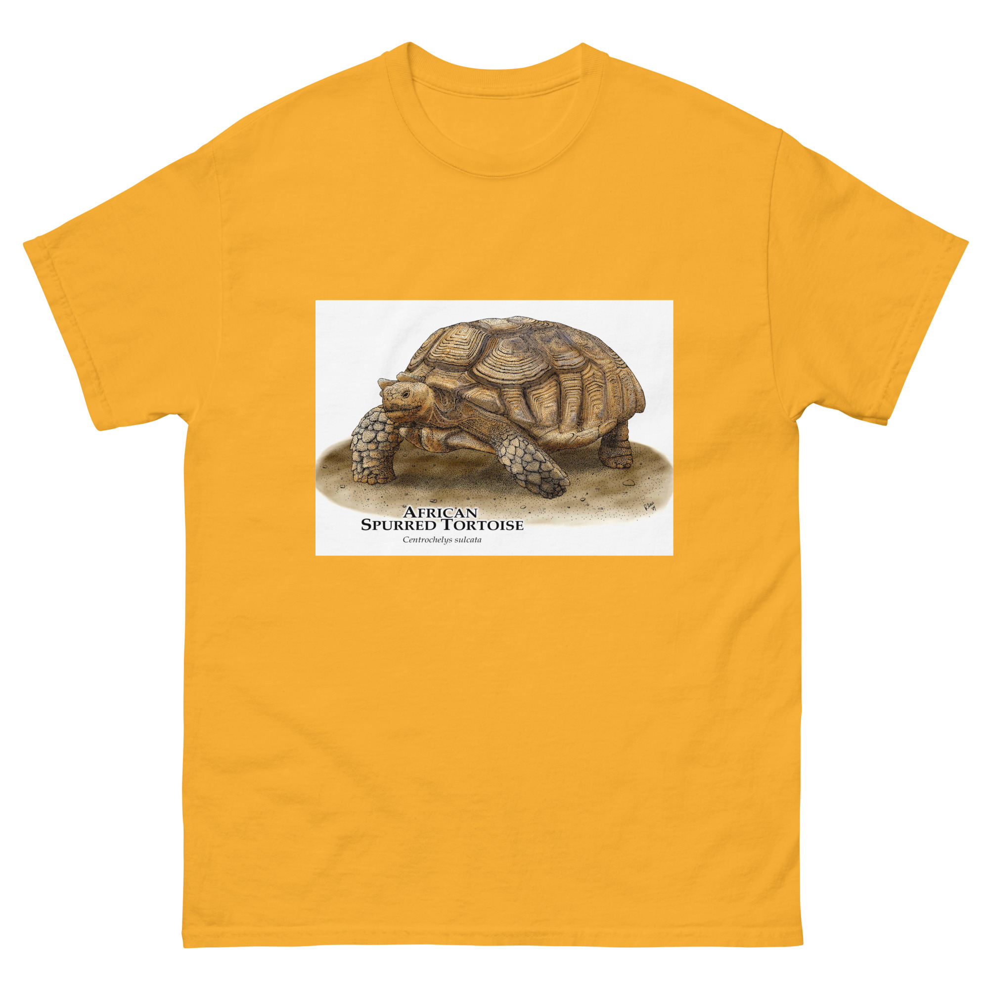 The African Spurred Tortoise is the largest of the mainland tortoises. These reptiles inhabits the southern edge of the sub-Sahara desert in north Africa. They can grow to be over 3 feet long and weigh well over 100 pounds. They have growth rings on the scutes that are strongly marked with age. Tortoises are important to deserts because their burrows provide shelter for other animals. Although they grow to be very large, sulcatas are often kept as pets.
