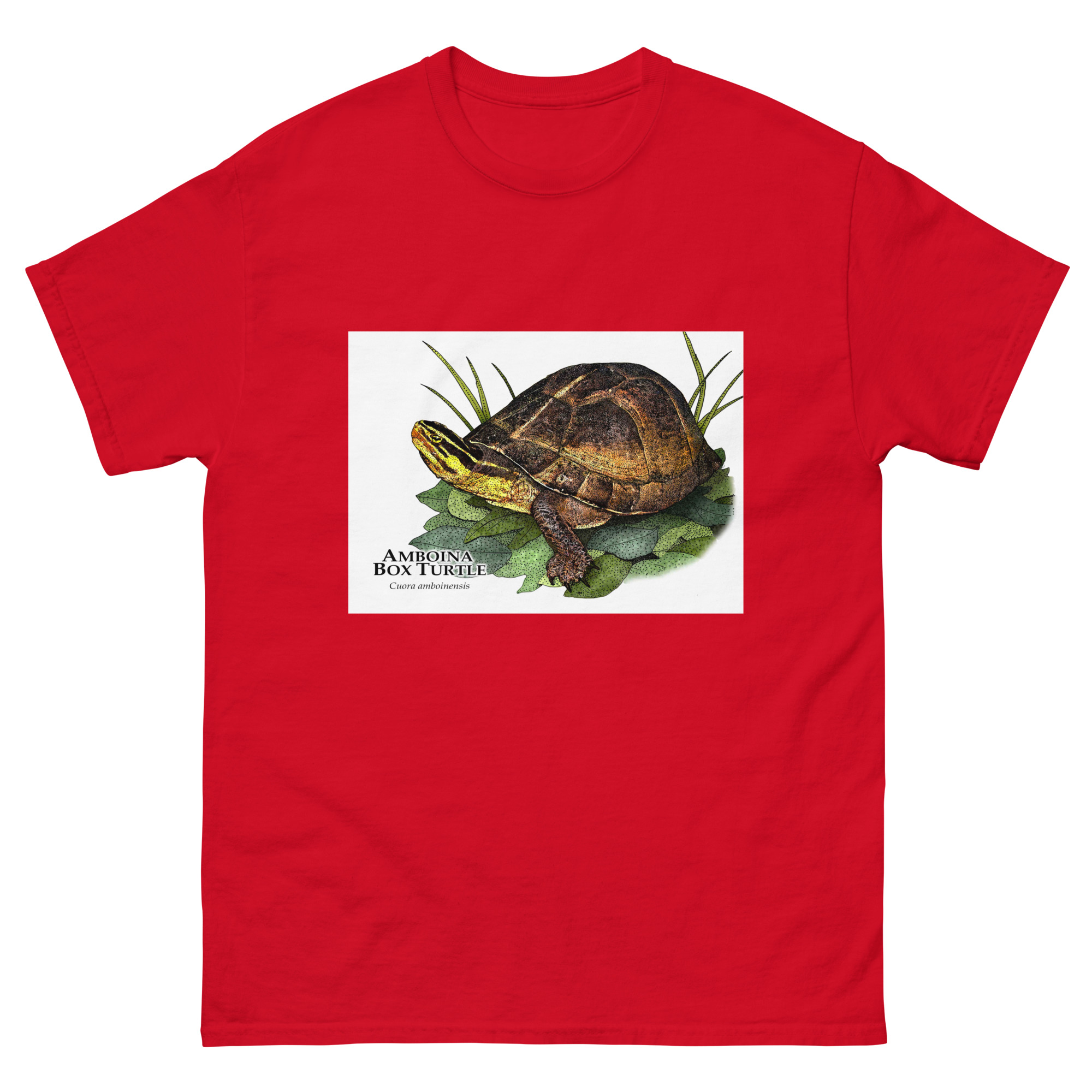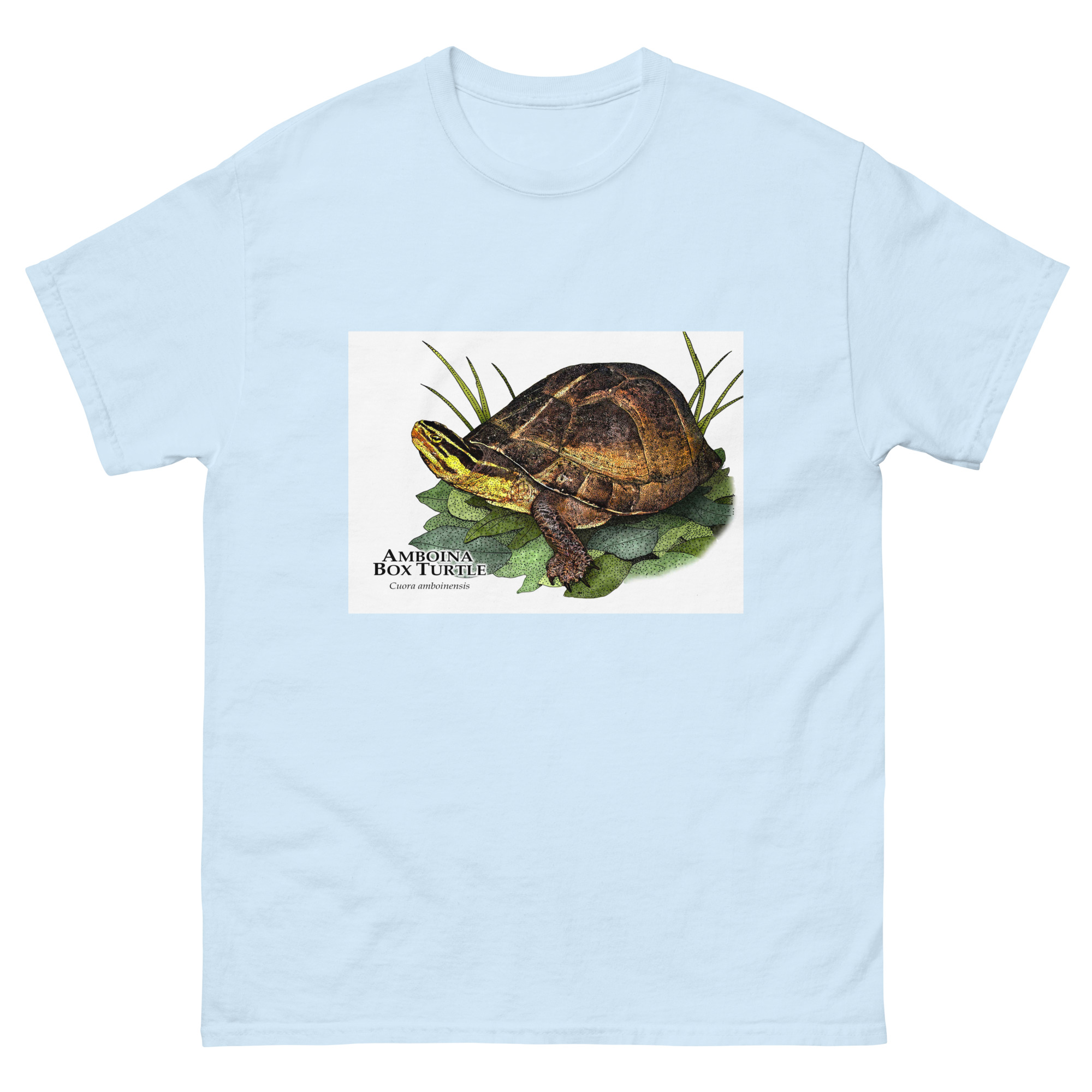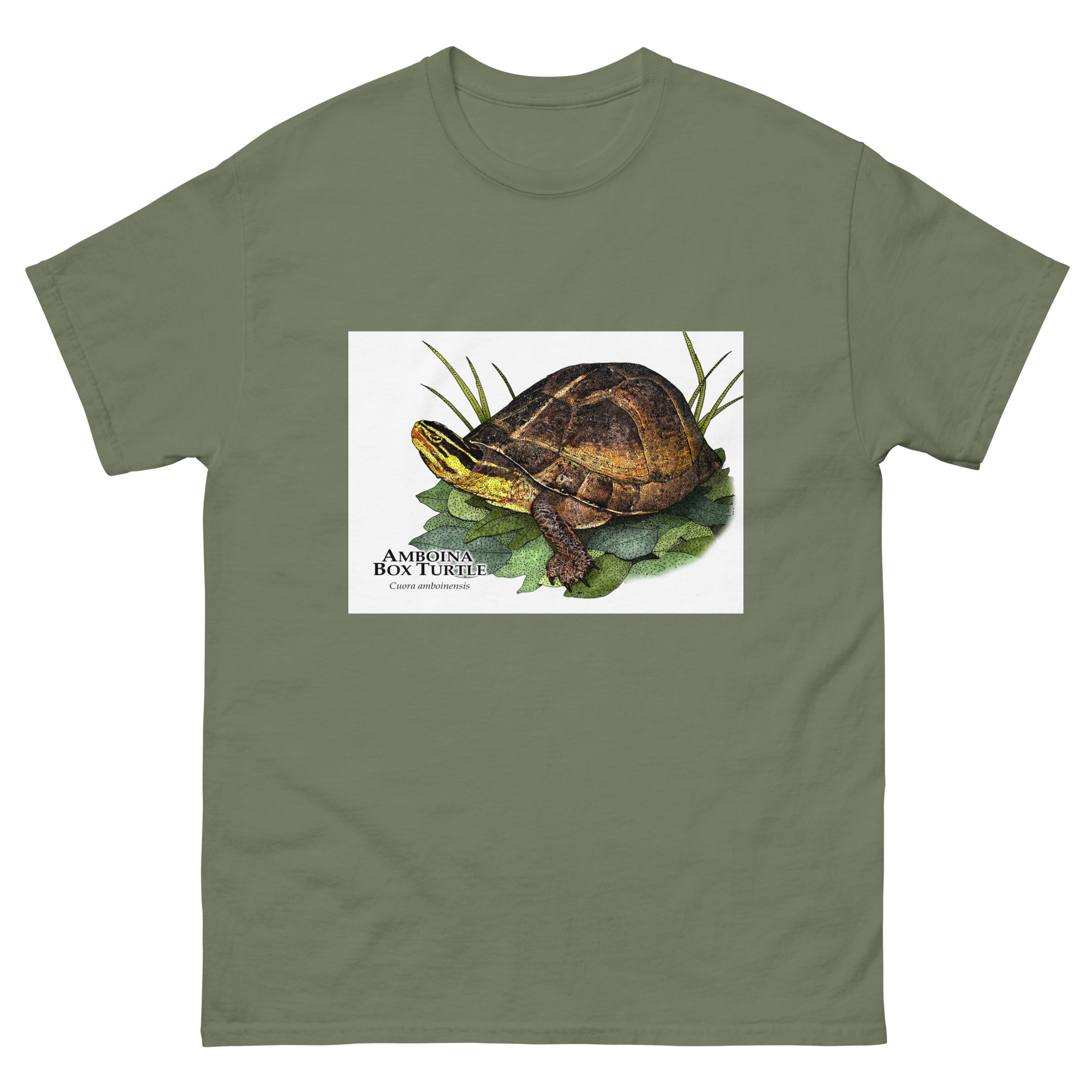 Fine art illustration of an Amboina Box Turtle (Cuora amboinensis) printed on a high-quality 100% men’s cotton t-shirt.