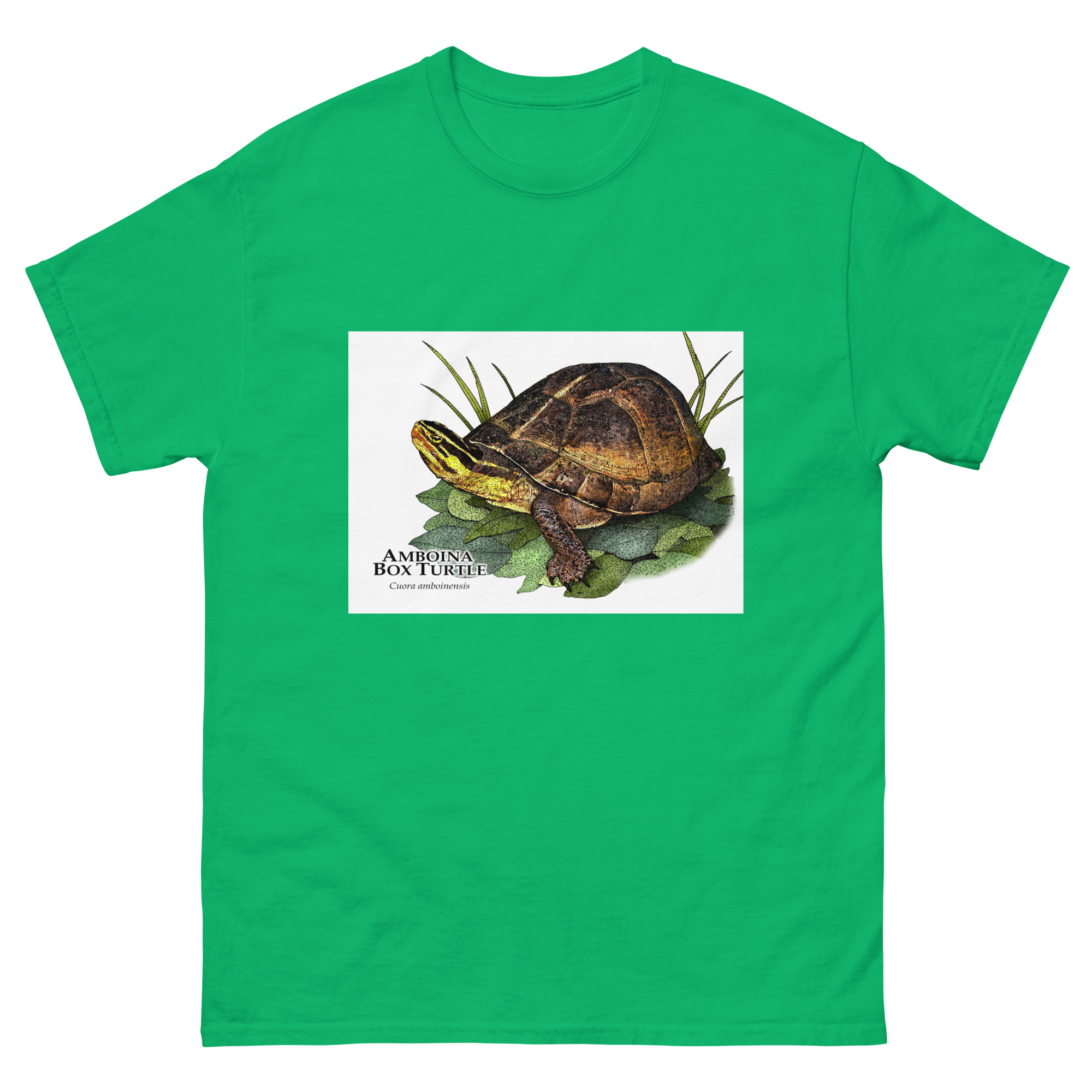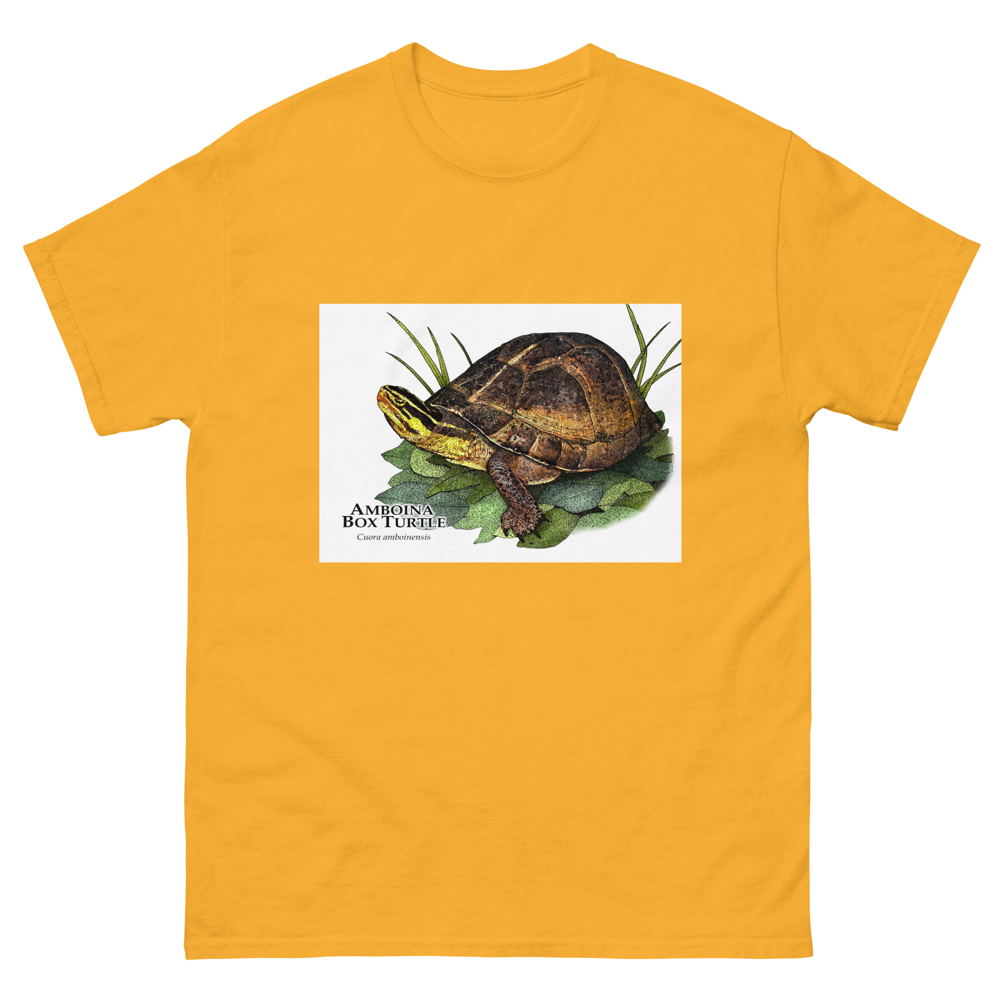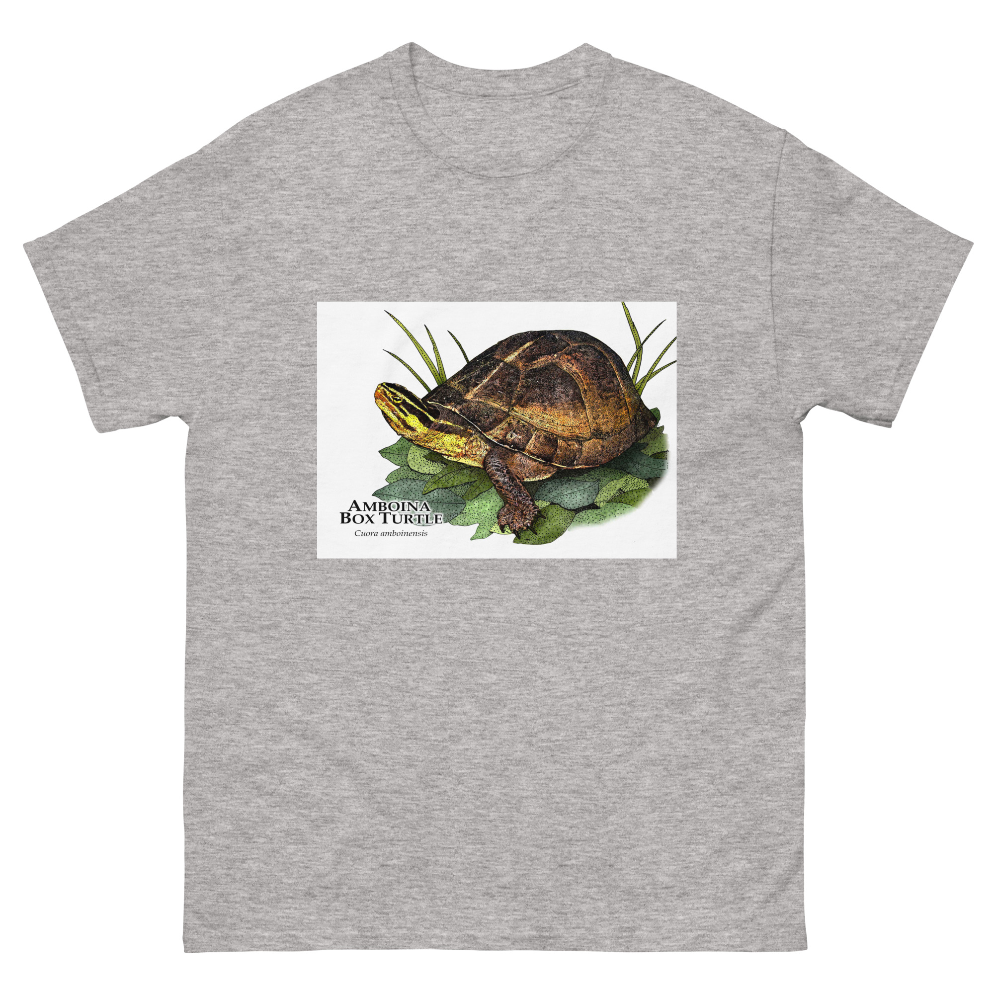Fine art illustration of an Amboina Box Turtle (Cuora amboinensis) printed on a high-quality 100% men’s cotton t-shirt.