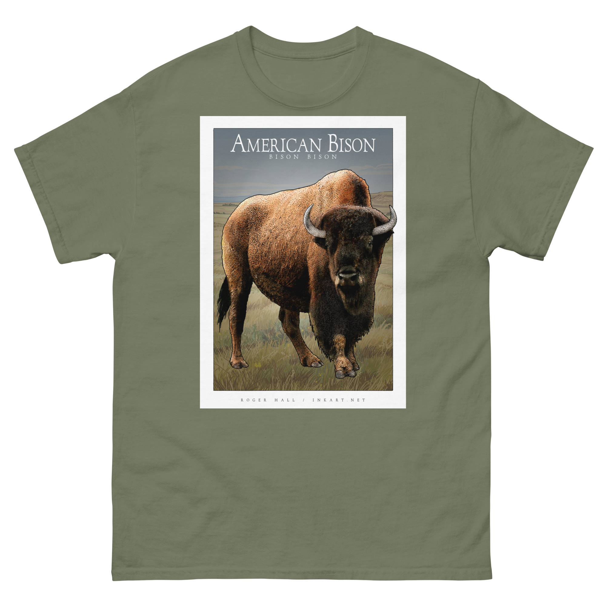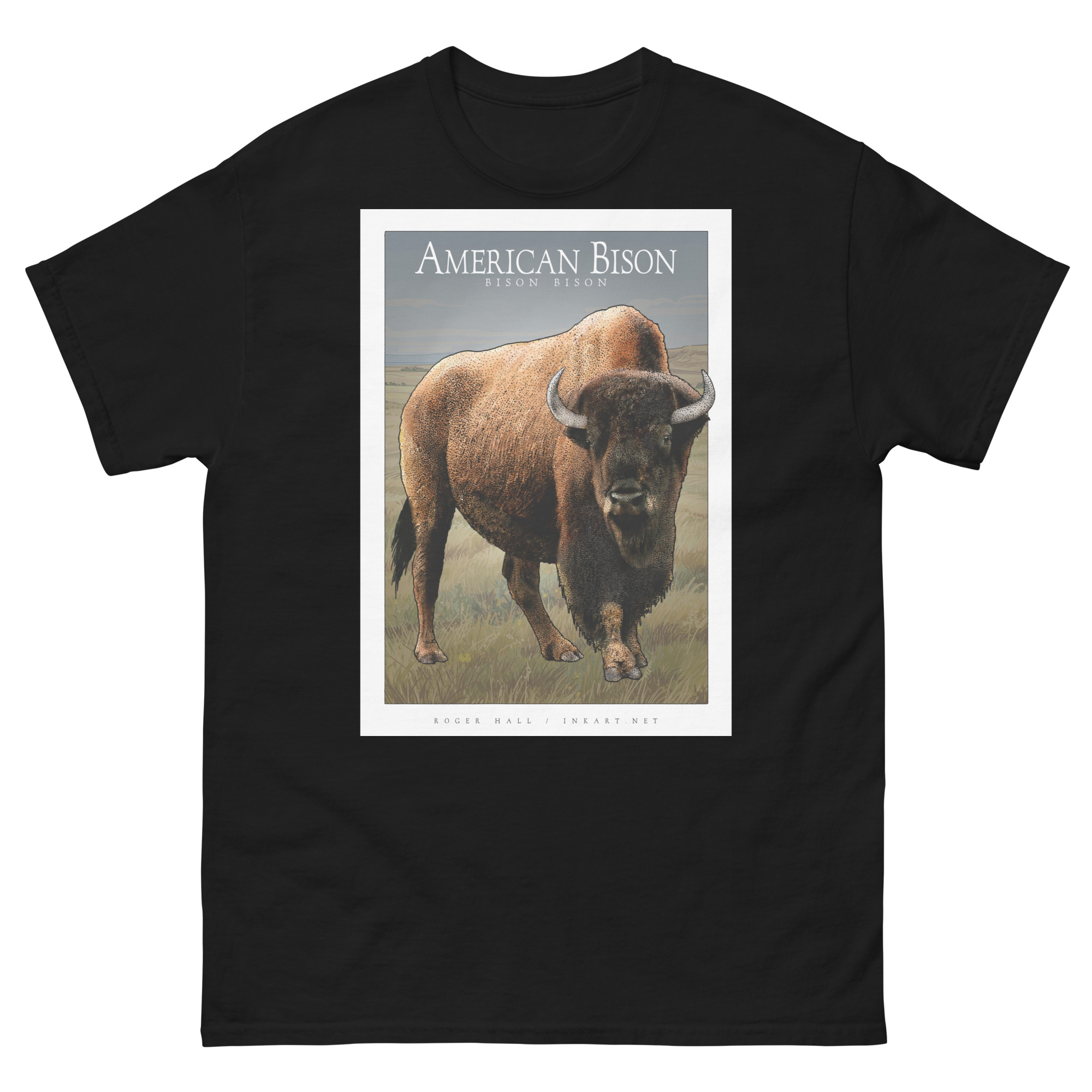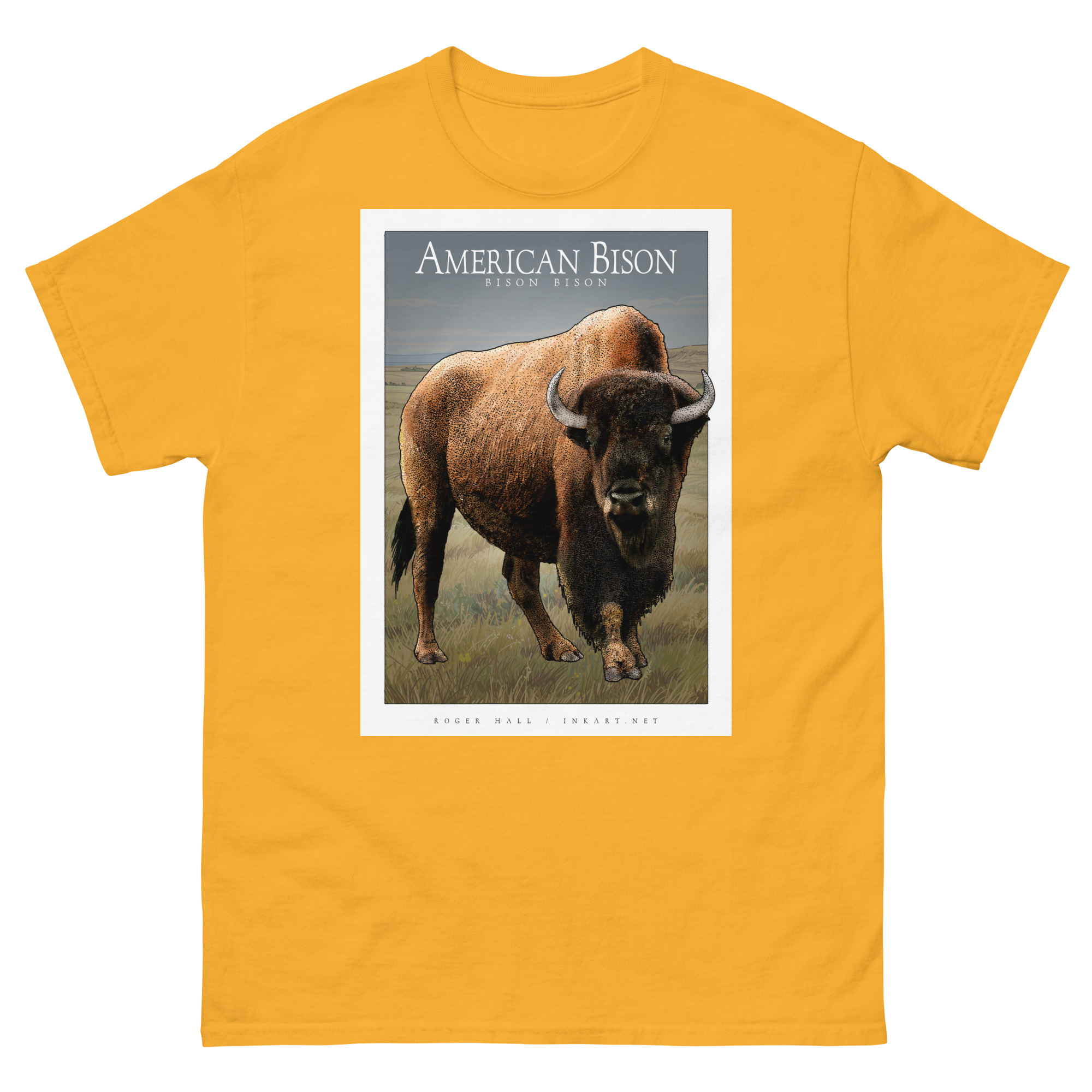 Scientifically accurate drawing of an American Bison (Bison bison.) The illustration of a printed on a high-quality 100% unisex cotton t-shirt.
