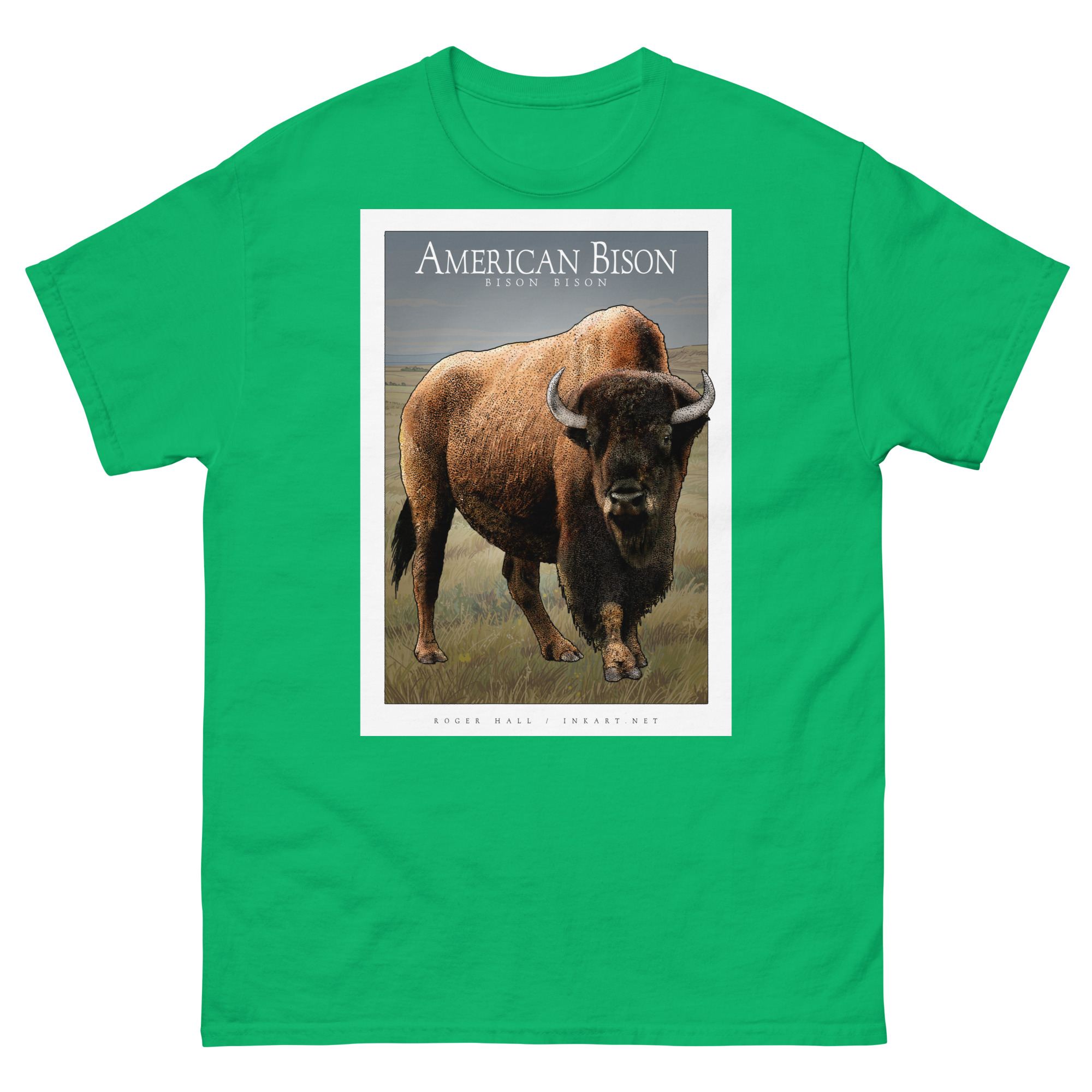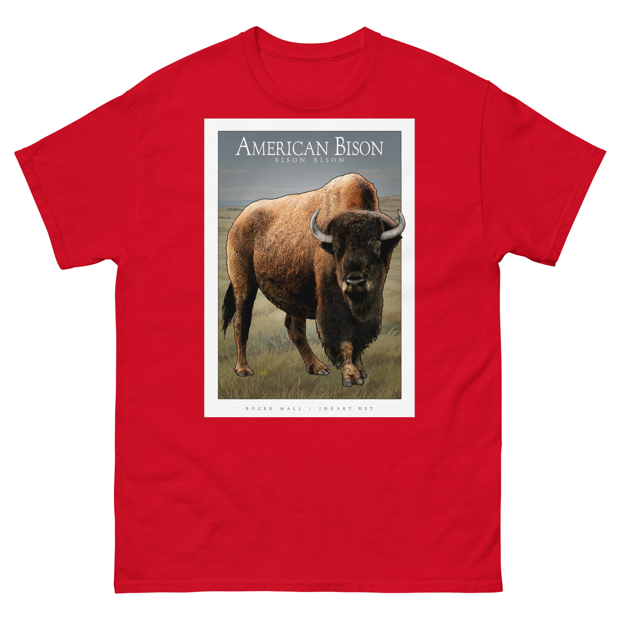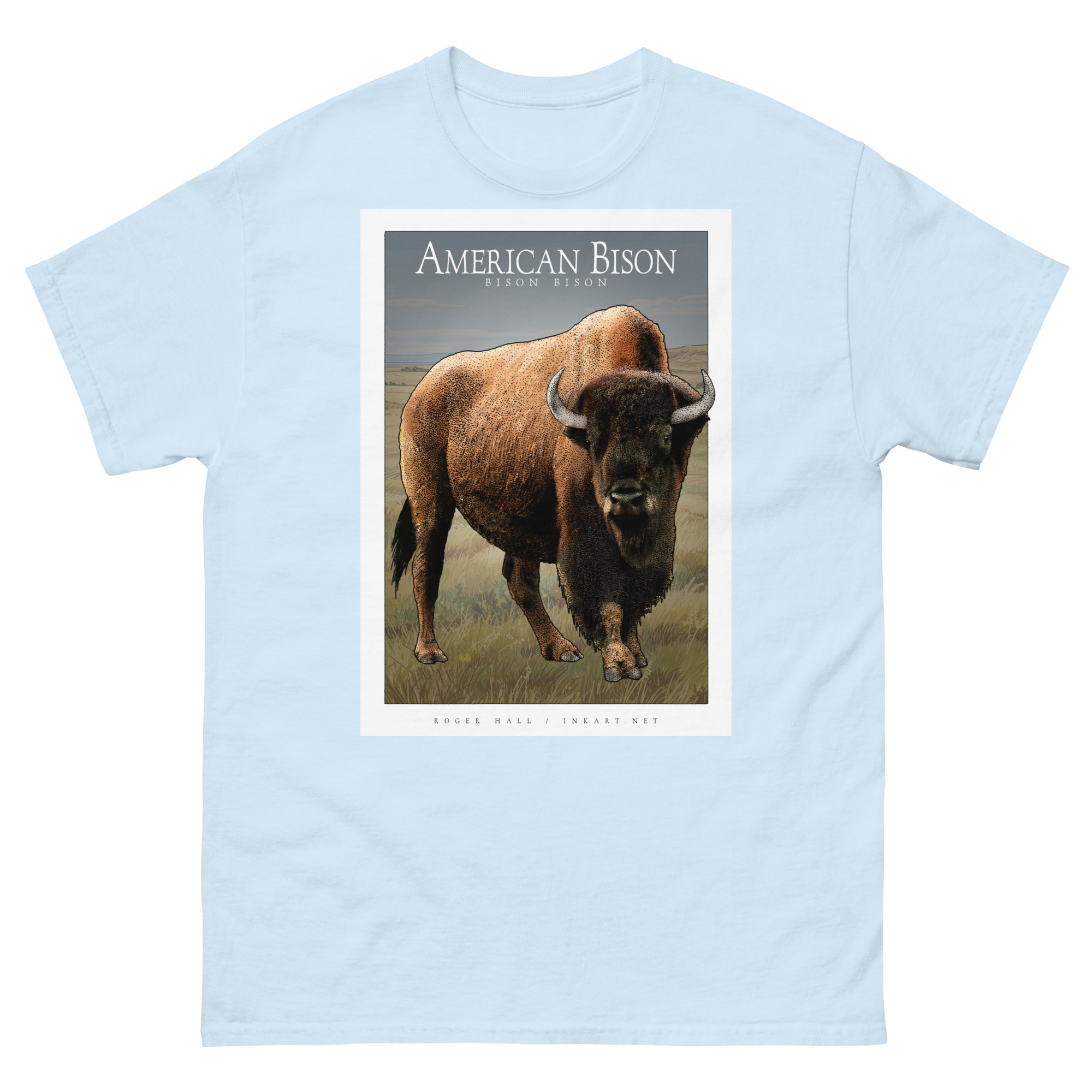 Scientifically accurate drawing of an American Bison (Bison bison.) The illustration of a printed on a high-quality 100% unisex cotton t-shirt.