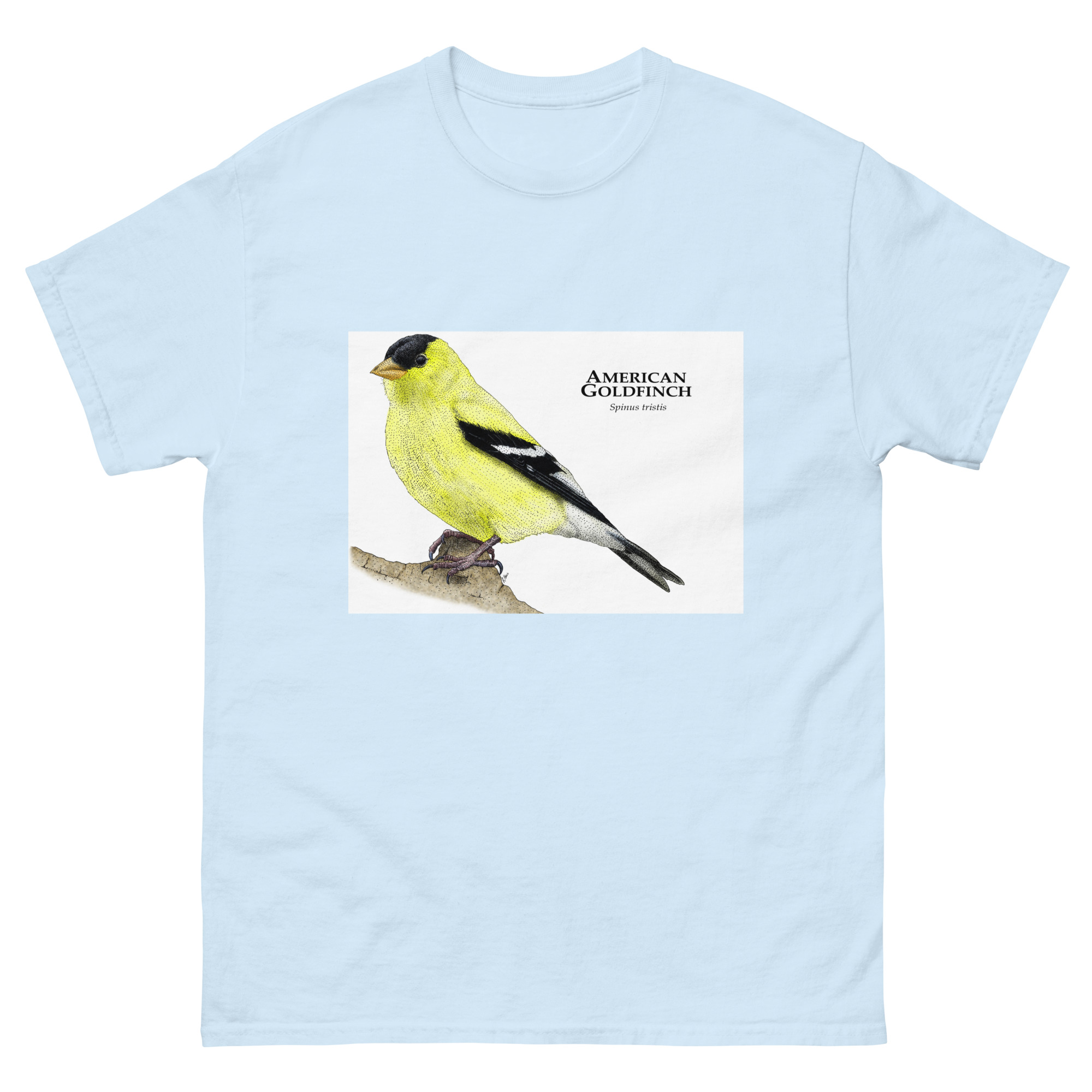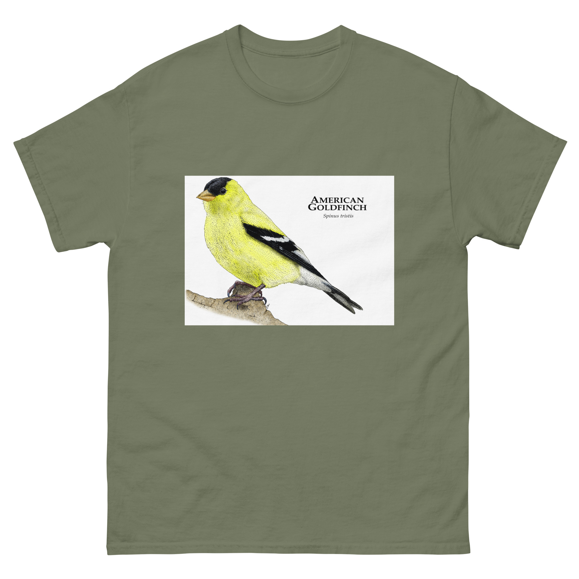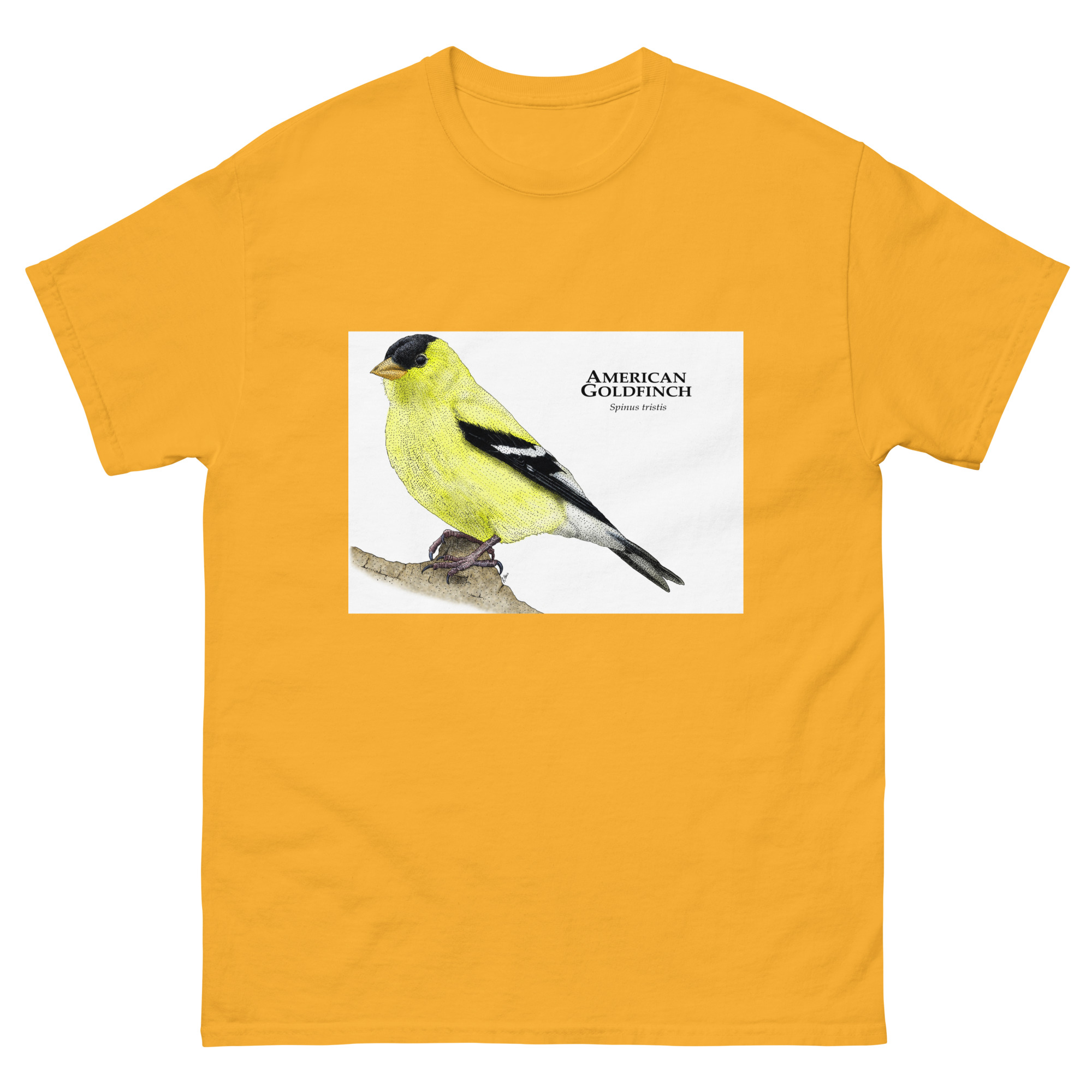 The American Goldfinch, also sometimes called the Eastern Goldfinch or Wild Canary, is a migratory bird ranging from Southern Canada through the US to North Carolina. During the breeding season the finches move southwards into Mexico. It is an adaptive bird, and can be found in many environments such as meadows, fields, orchards, forests, farmlands and urban environments. They are a popular birdfeeder and common visitor.