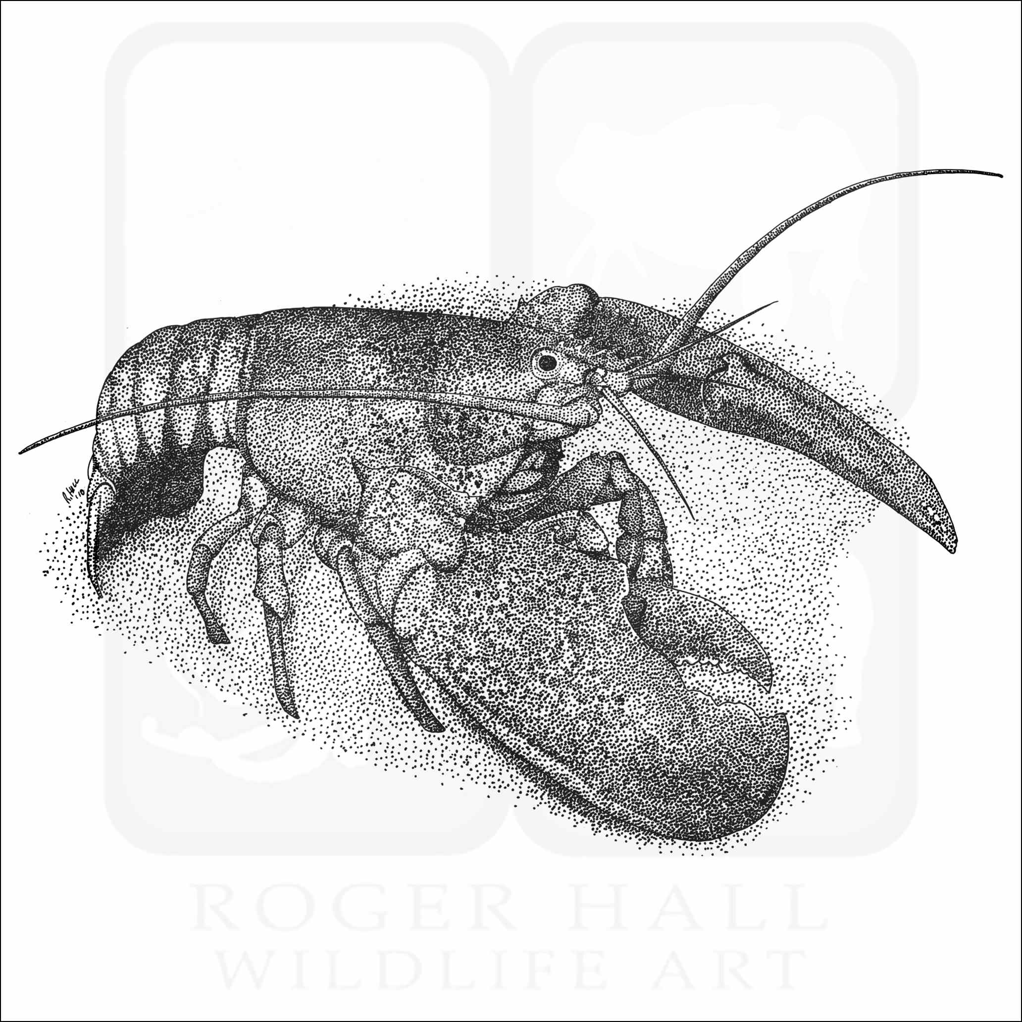 Fine art illustration of an American Lobster (Homarus americanus.)