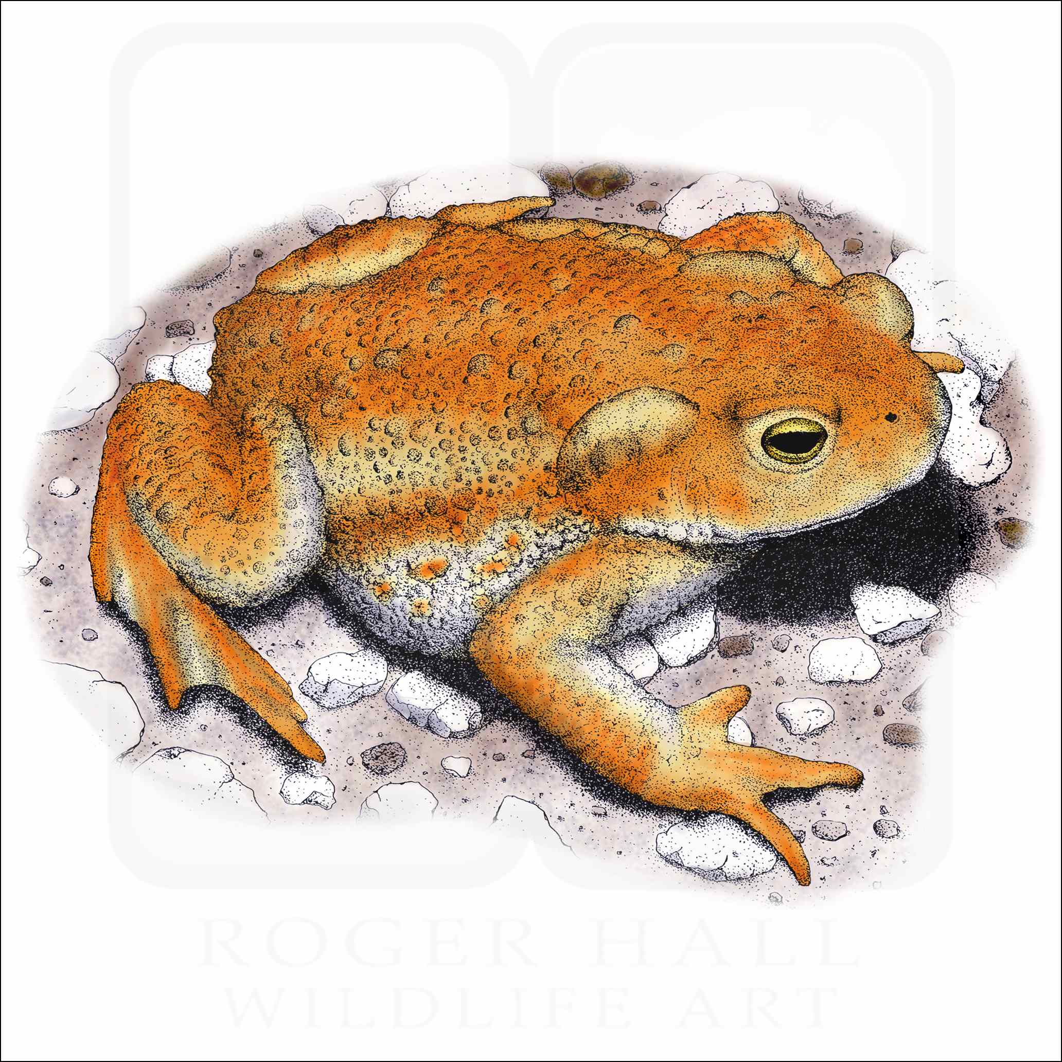 The American Toad is one of my earliest drawings when I was transitioning from architecture to animals and nature. Something about the texture of the skins of amphibians really translates well into an stipple drawing. The inked version was completed while I was living in Germany in 1998. The digital tinting was added in 2007.