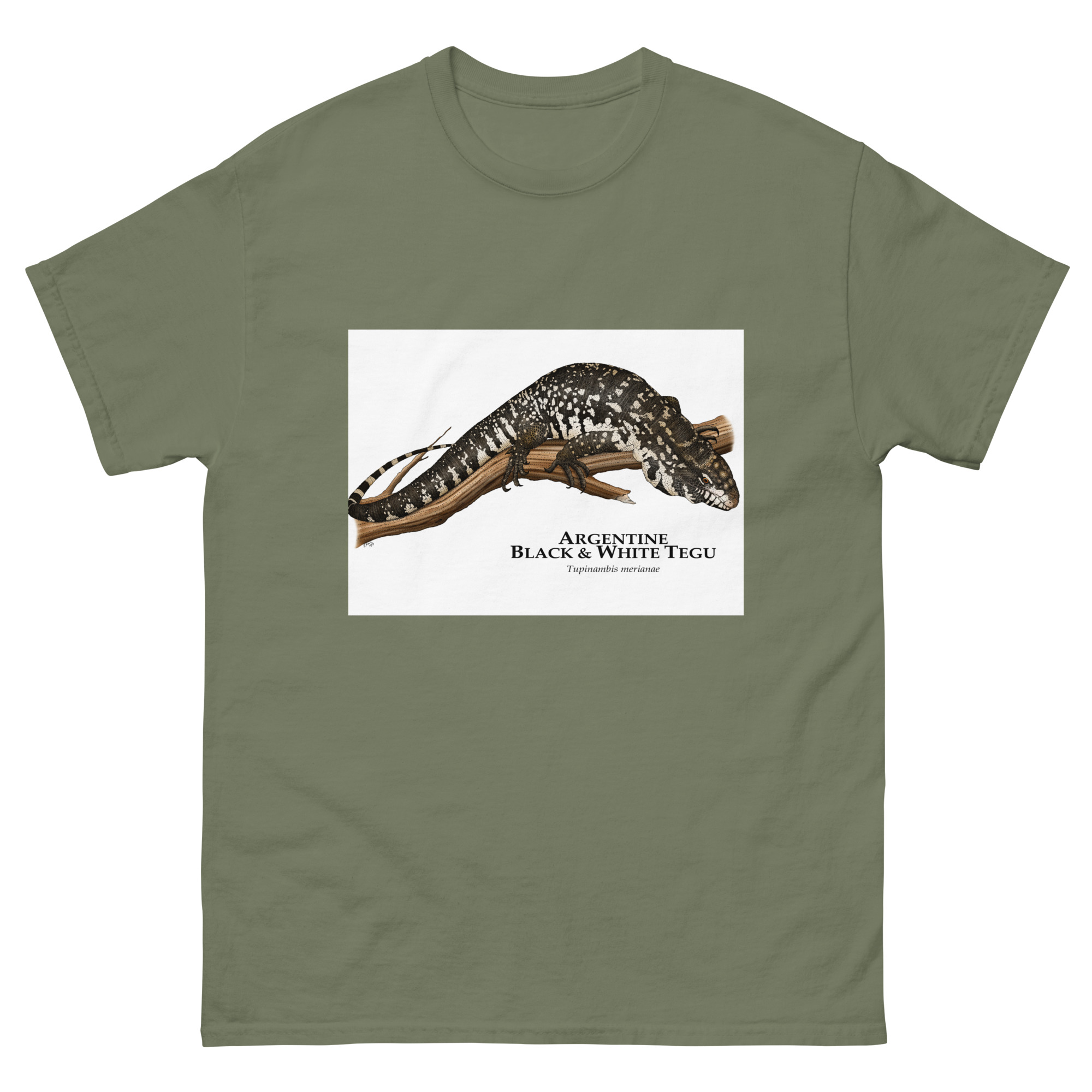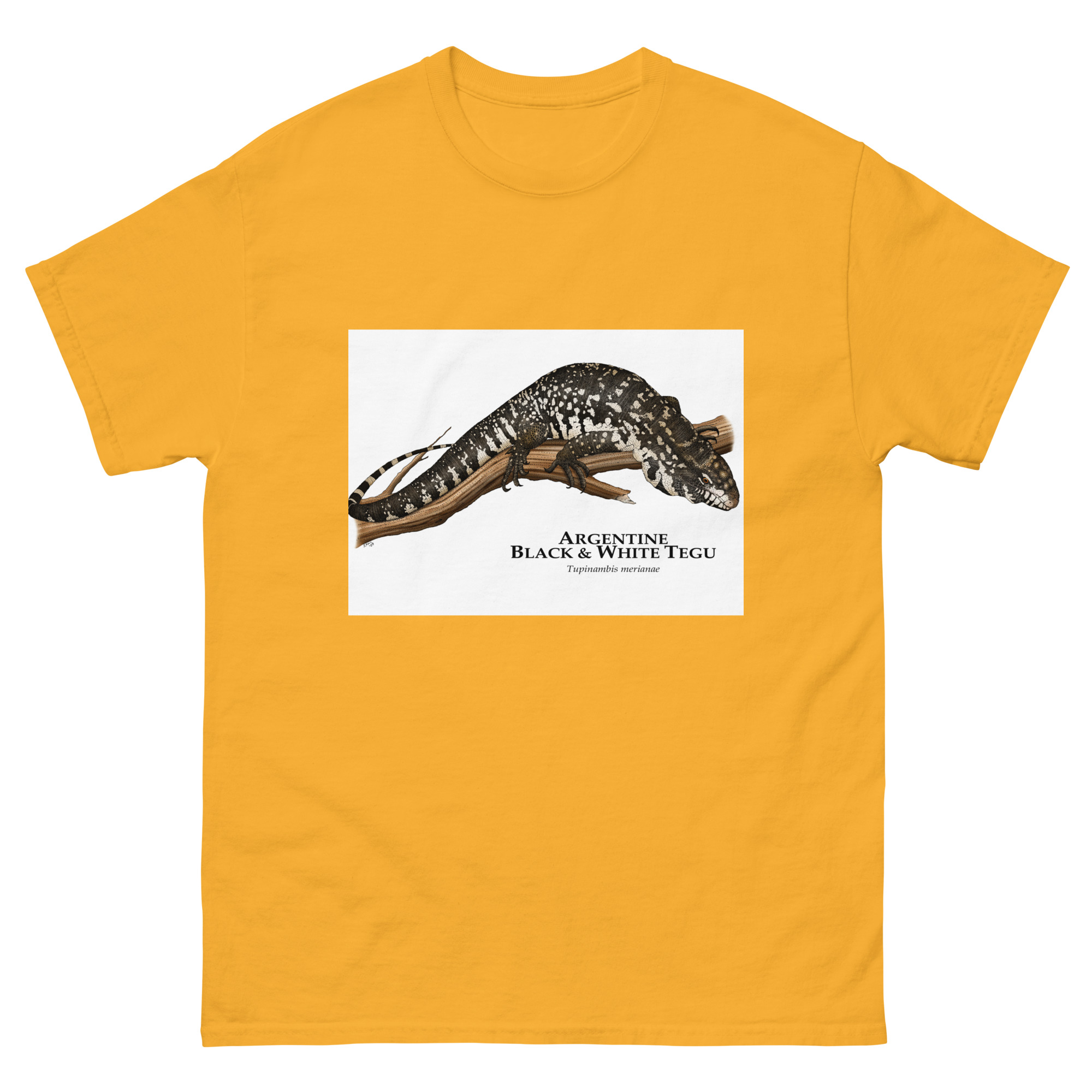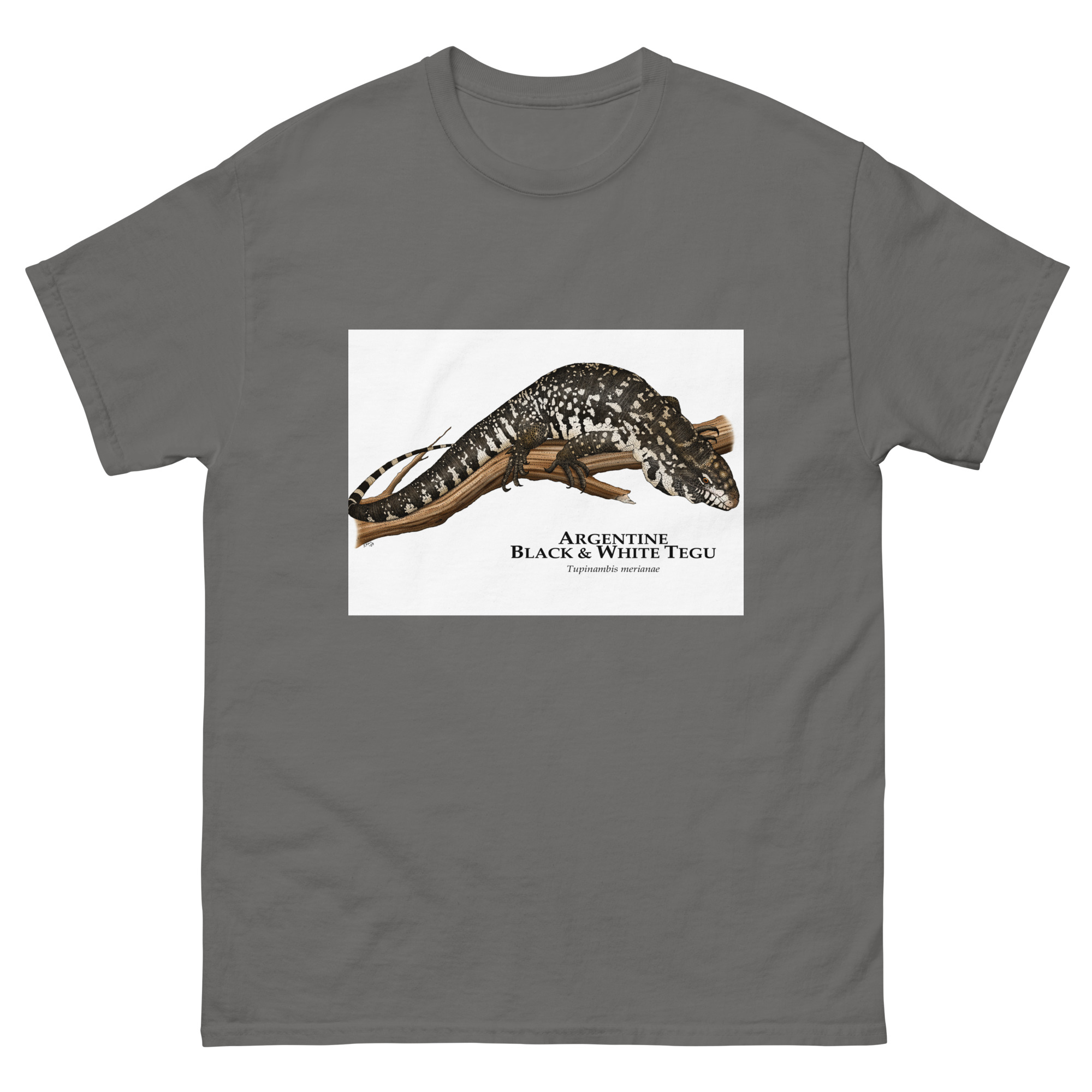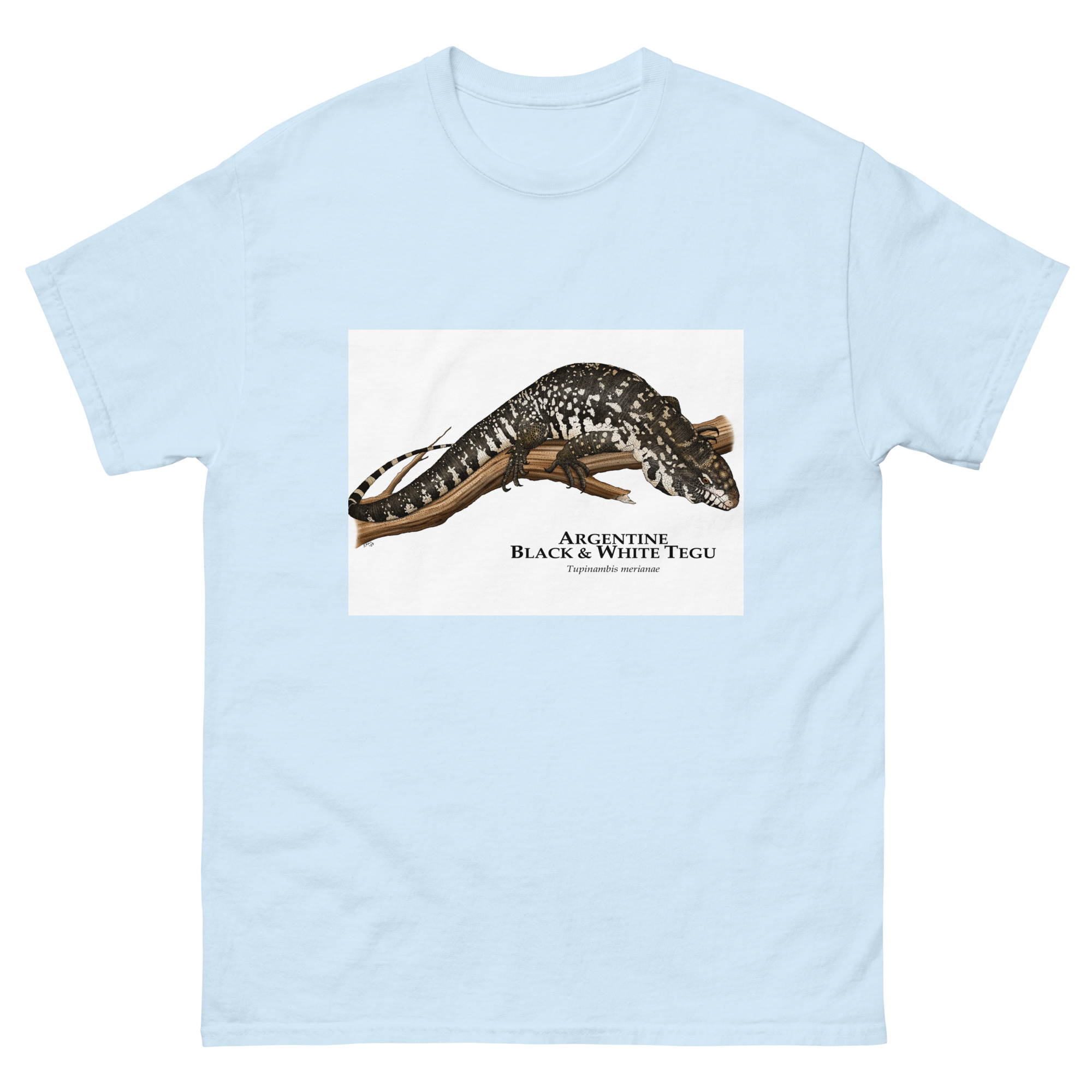 The Argentine Black and White Tegu – sometime simply called the Black and White Tegu – is the largest species of Tegu on earth. They are found in the tropical rainforests of eastern and central parts of South America. They are considered highly intelligent for reptiles. These lizards grow to roughly four feet in length at maturity. When born the hatchlings are bright green with black markings. As the reptile matures, the green fades usually within a few months. Tegus are very popular in the pet trade, and in some cases have even been trained to use litter boxes.