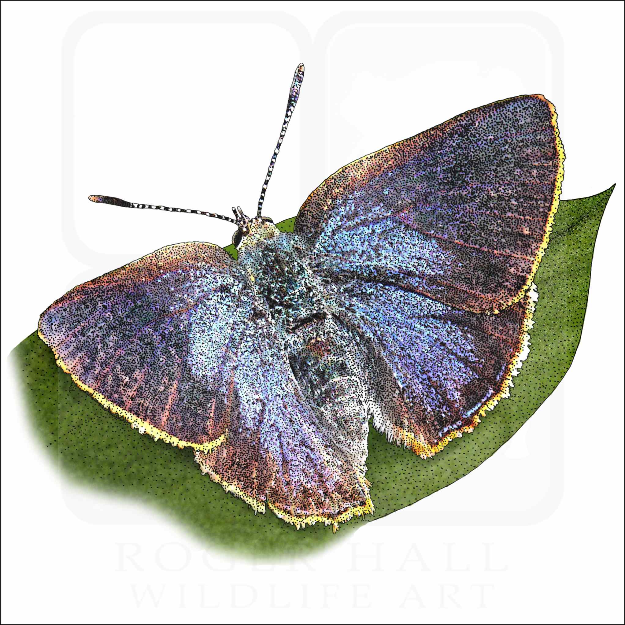 Fine art illustration of an Arizona Hairstreak Butterfly (Erora quaderna.)