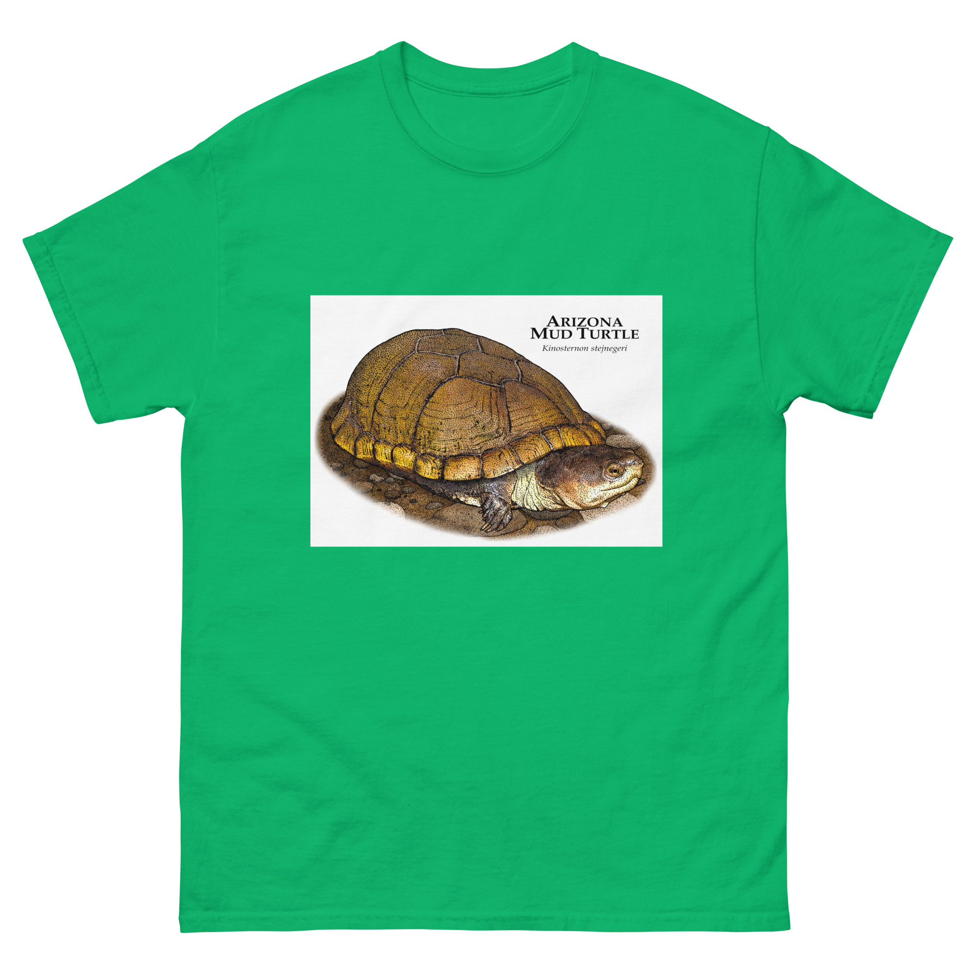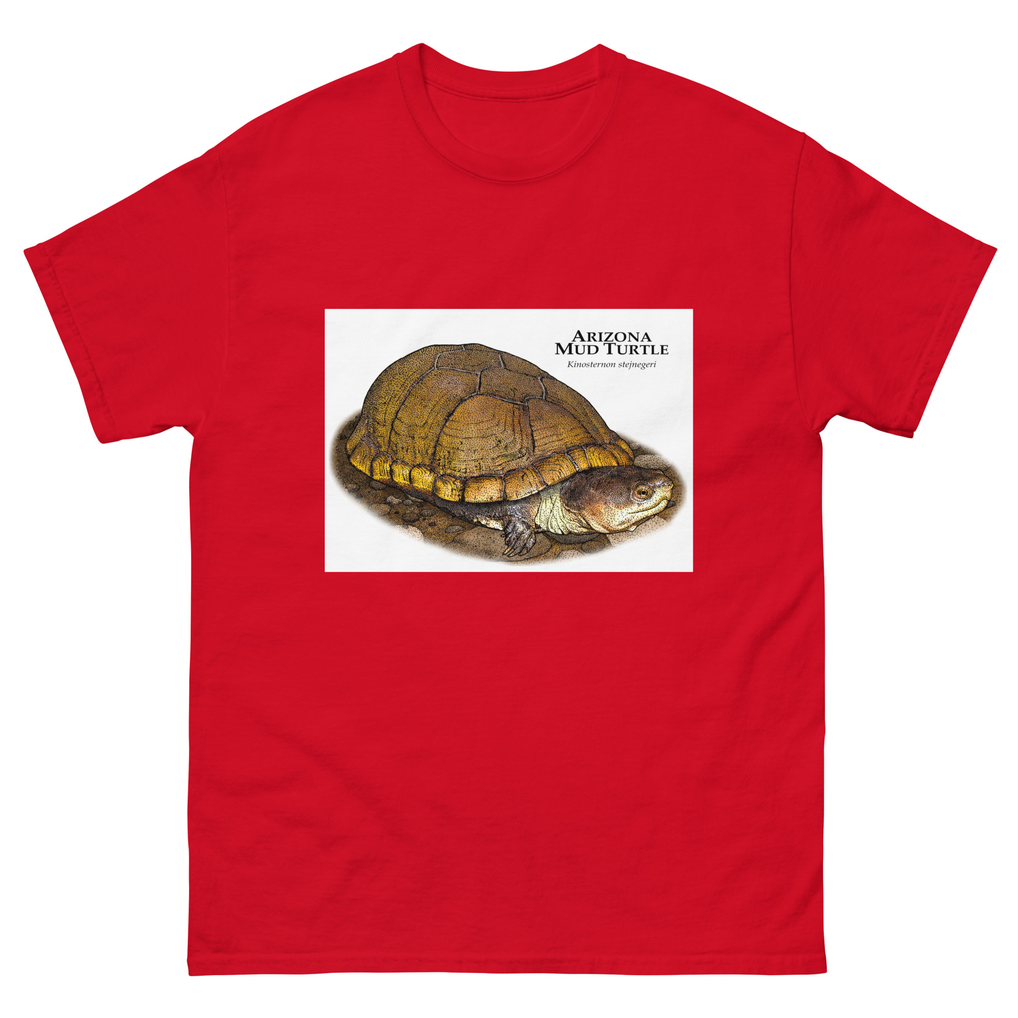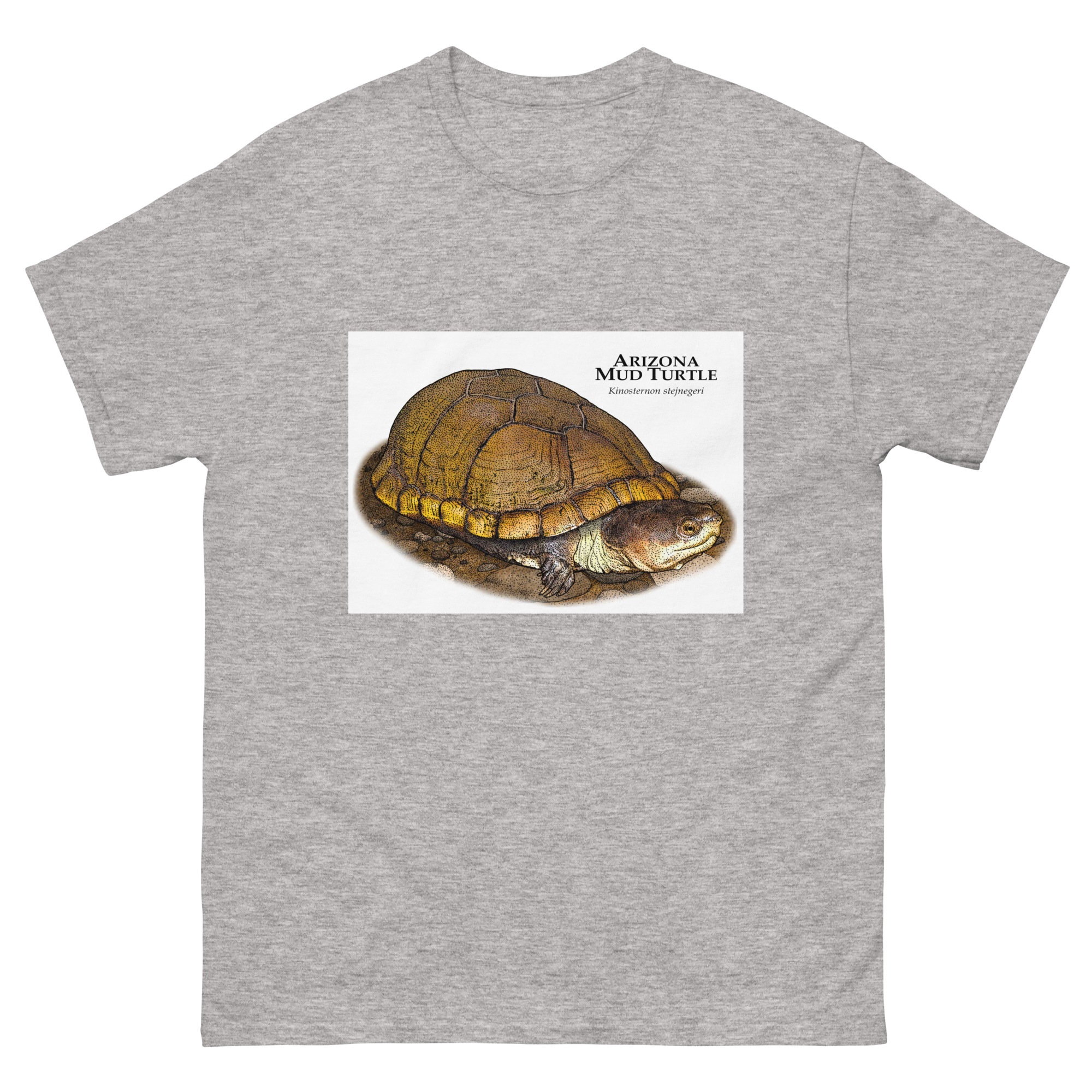 Fine art illustration of an Arizona Mud Turtle (Kinosternon stejnegeri) printed on a high-quality 100% men’s cotton t-shirt.