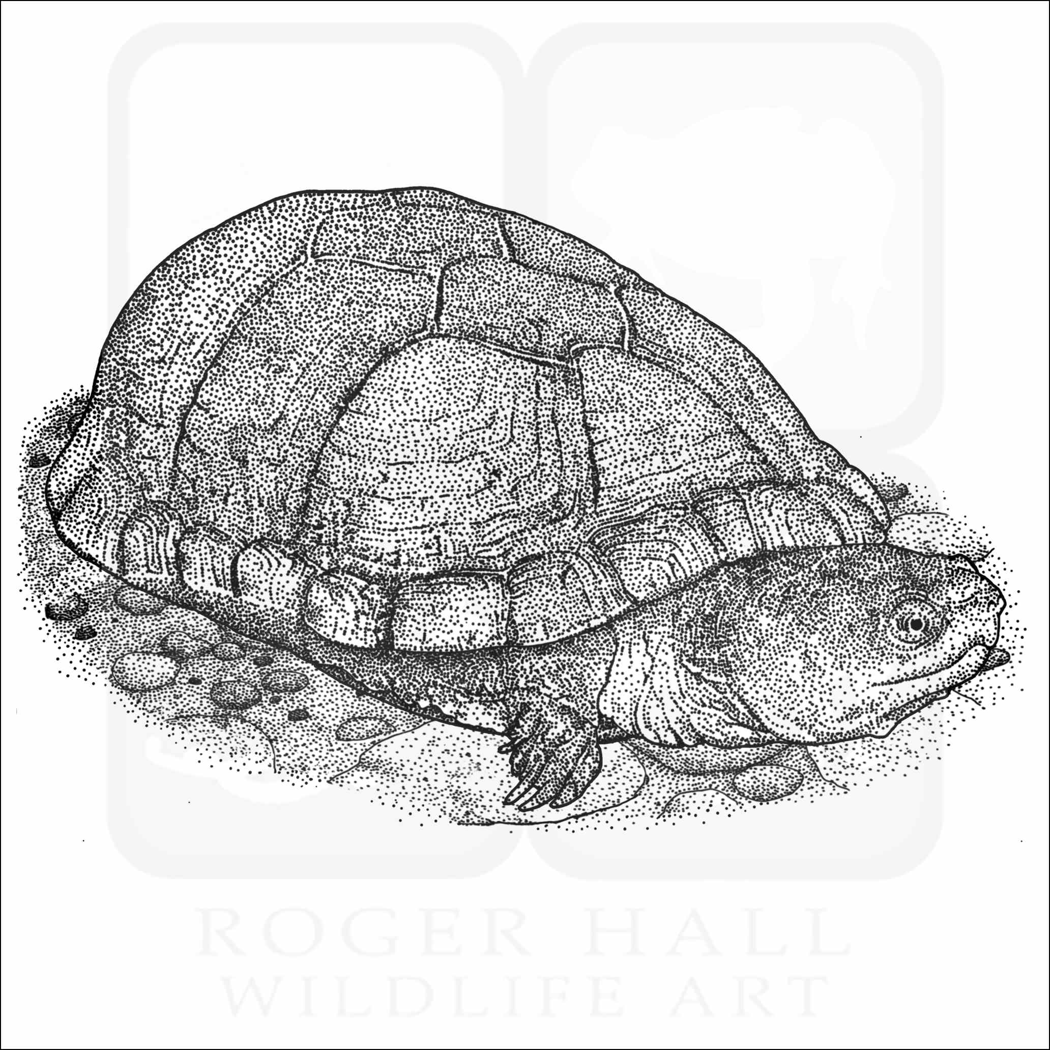 Fine art illustration of an Arizona Mud Turtle (Kinosternon stejnegeri.) The illustration is available in black and white or color.