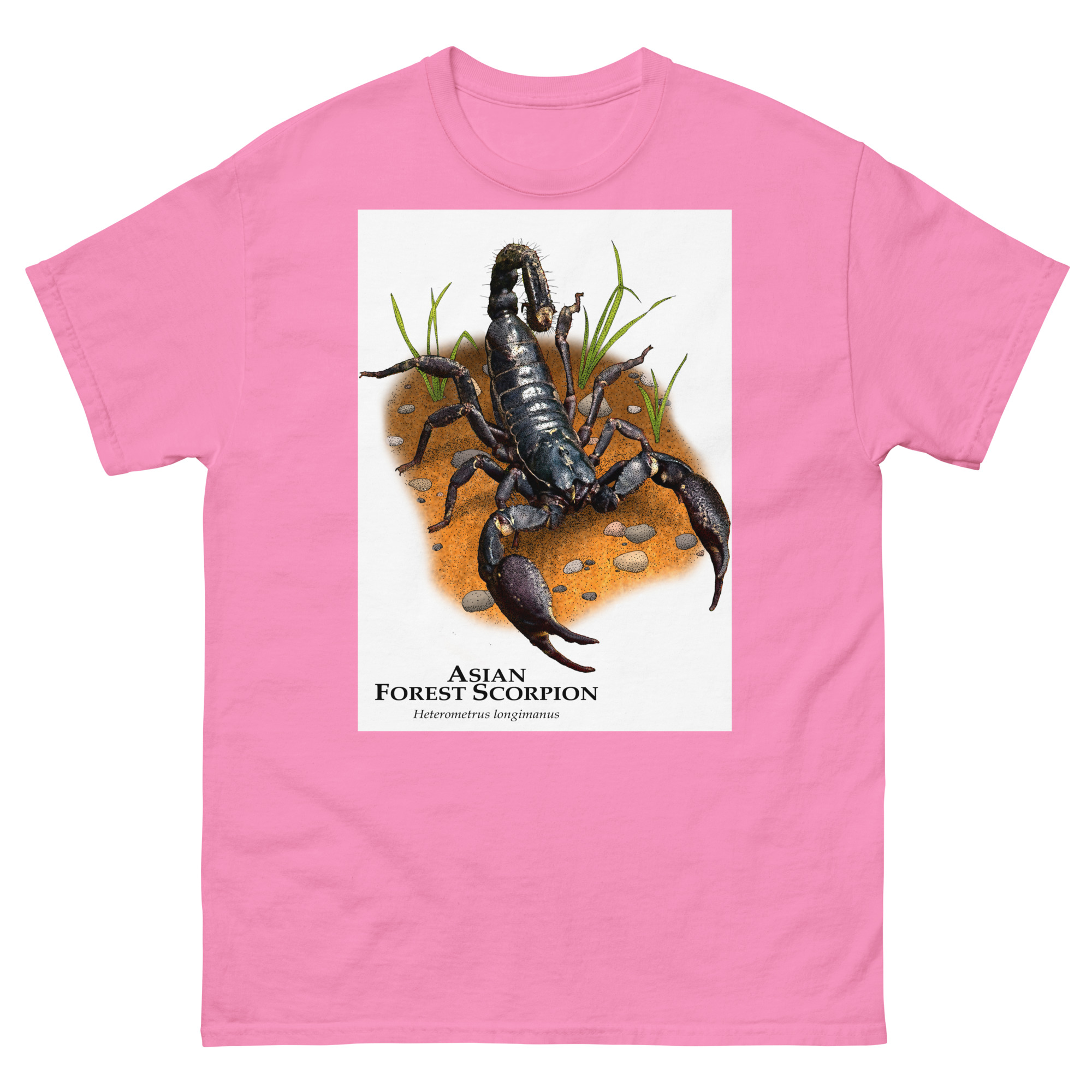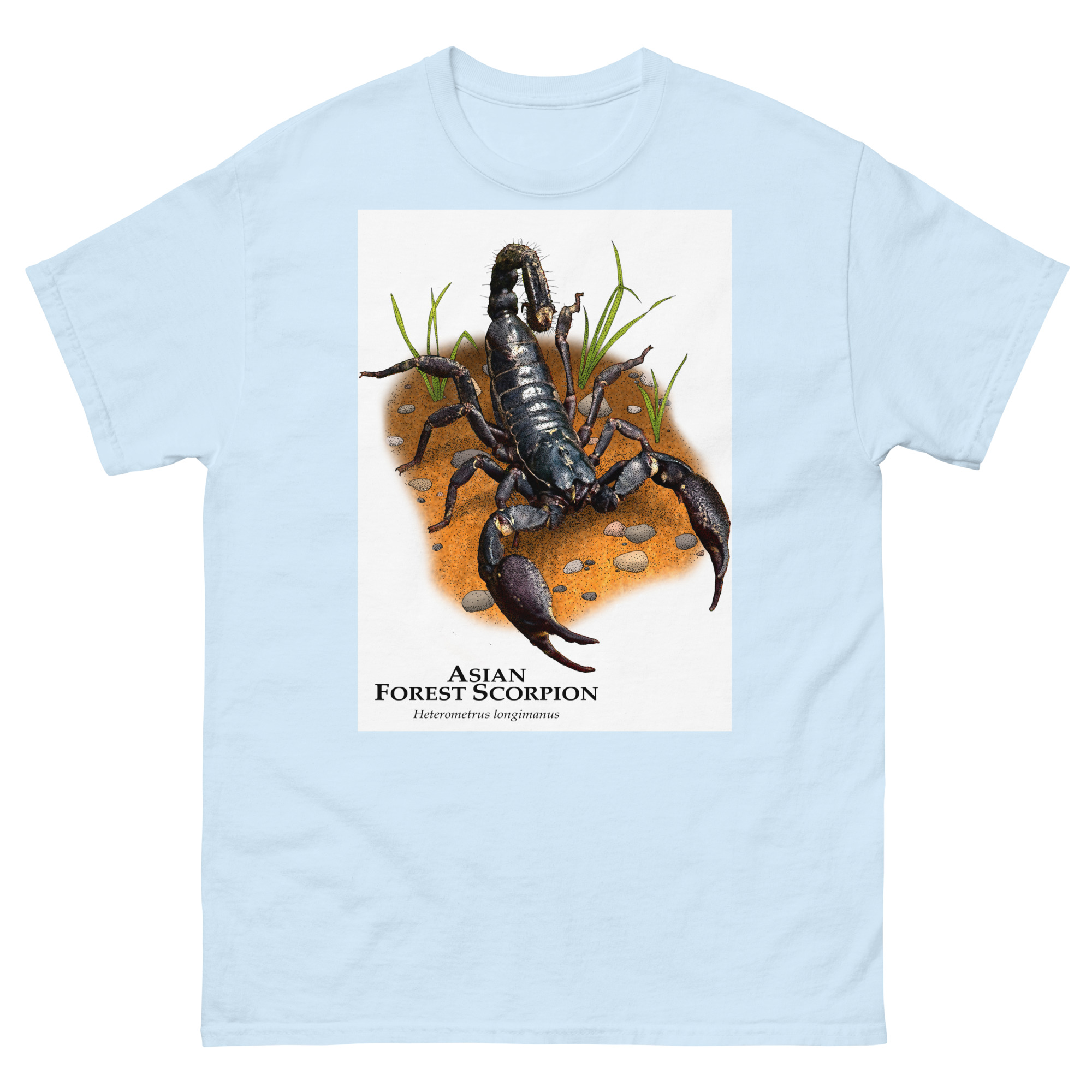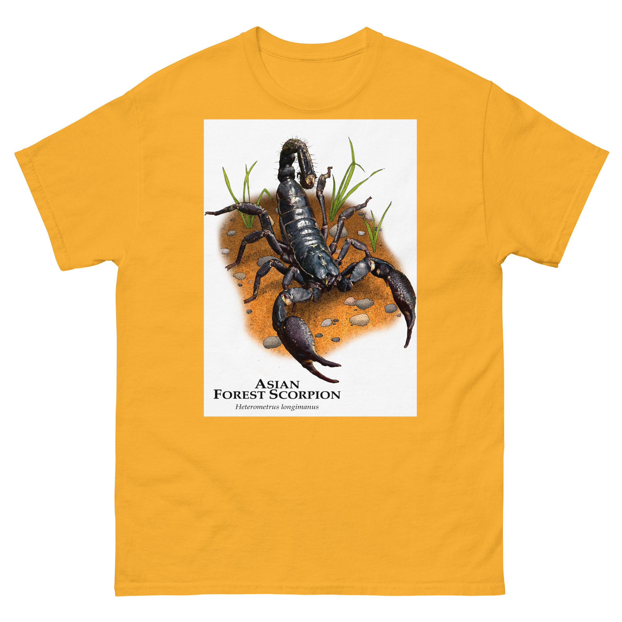 The Asian Forest Scorpion is a member of the genus Heterometrus, which include about 50 species of scorpion native to the tropical and subtropical forests of Southeast Asia. In this family are some of the largest scorpions in the world. Heterometrus longimanus, like most scorpions, is a nocturnal species which spends much of it’s day hidden away in a burrow, or in a tree cavity or other forest litter. It emerges at night seeking prey, which is can subdue with it’s large claws and venom tipped tail. The sting of this scorpion, while painful, is not usually fatal. They are sometimes kept as pets.