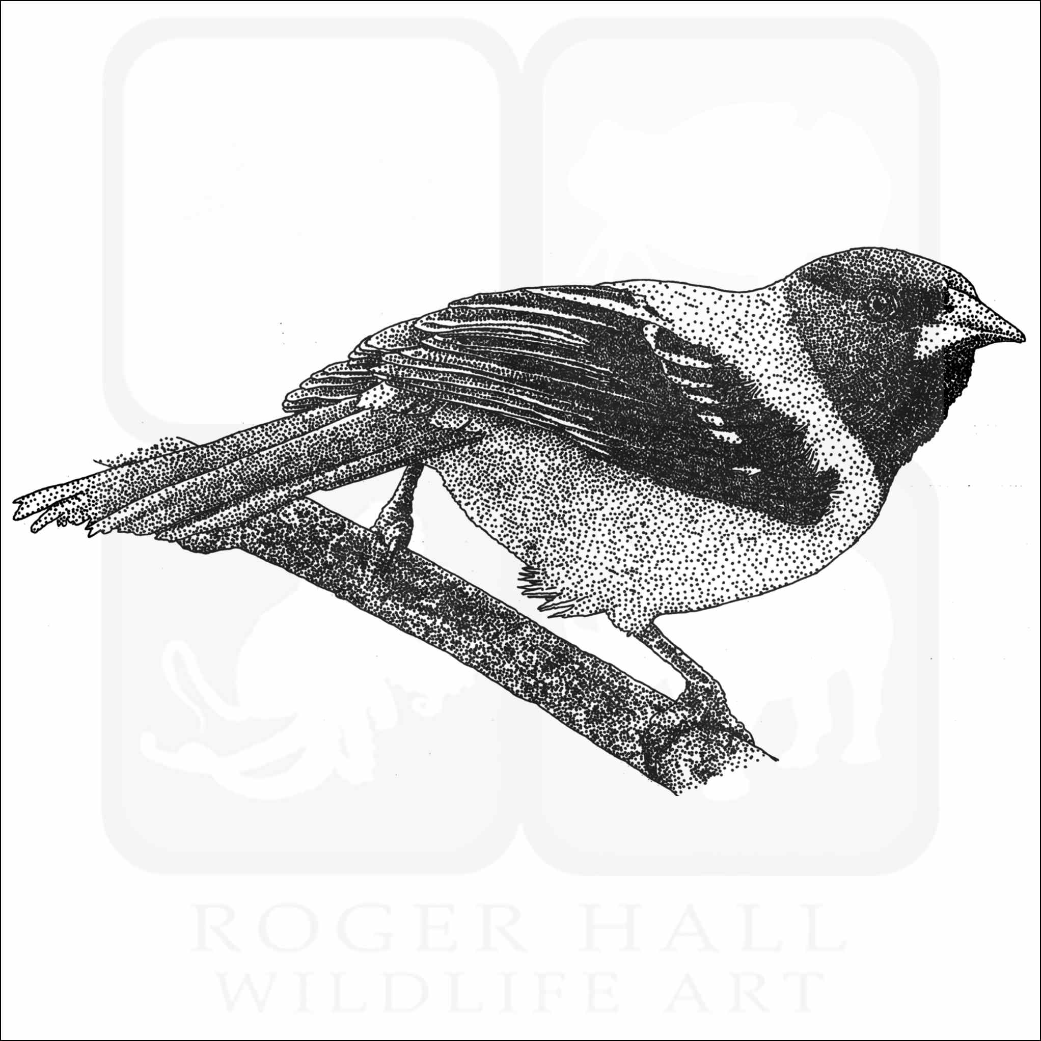 Fine art illustration of an Audubon’s Oriole (Icterus graduacauda.) The illustration is available in black and white or color.
