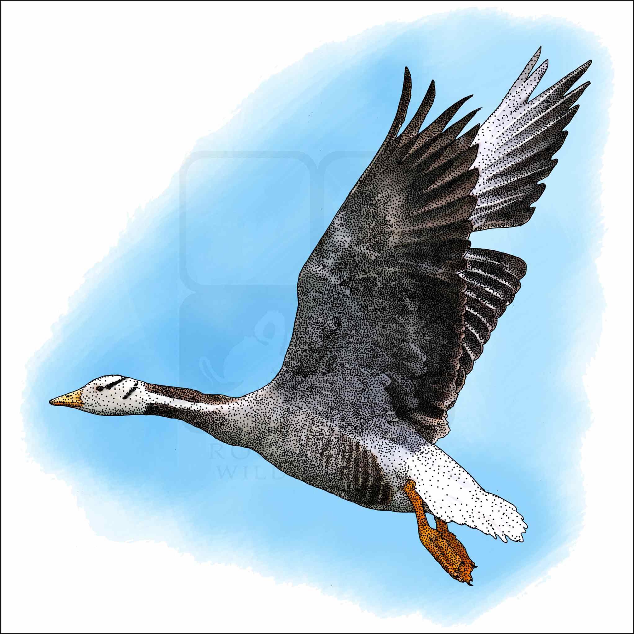 Tags: animal, Anser indicus, Asia, Bar-Headed Goose, bird, clip art, drawing, illustration, scientific illustration, waterfowl, wildlife art