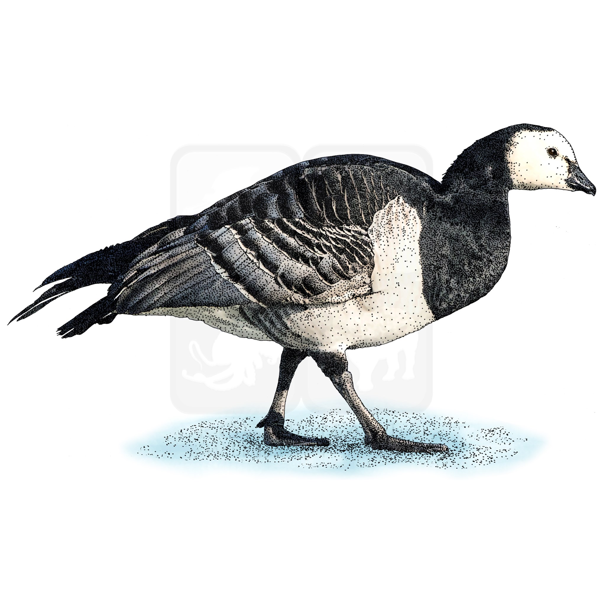 Fine art illustration of a Barnacle Goose (Branta leucopsis.) The drawing is available in either color or black & white.