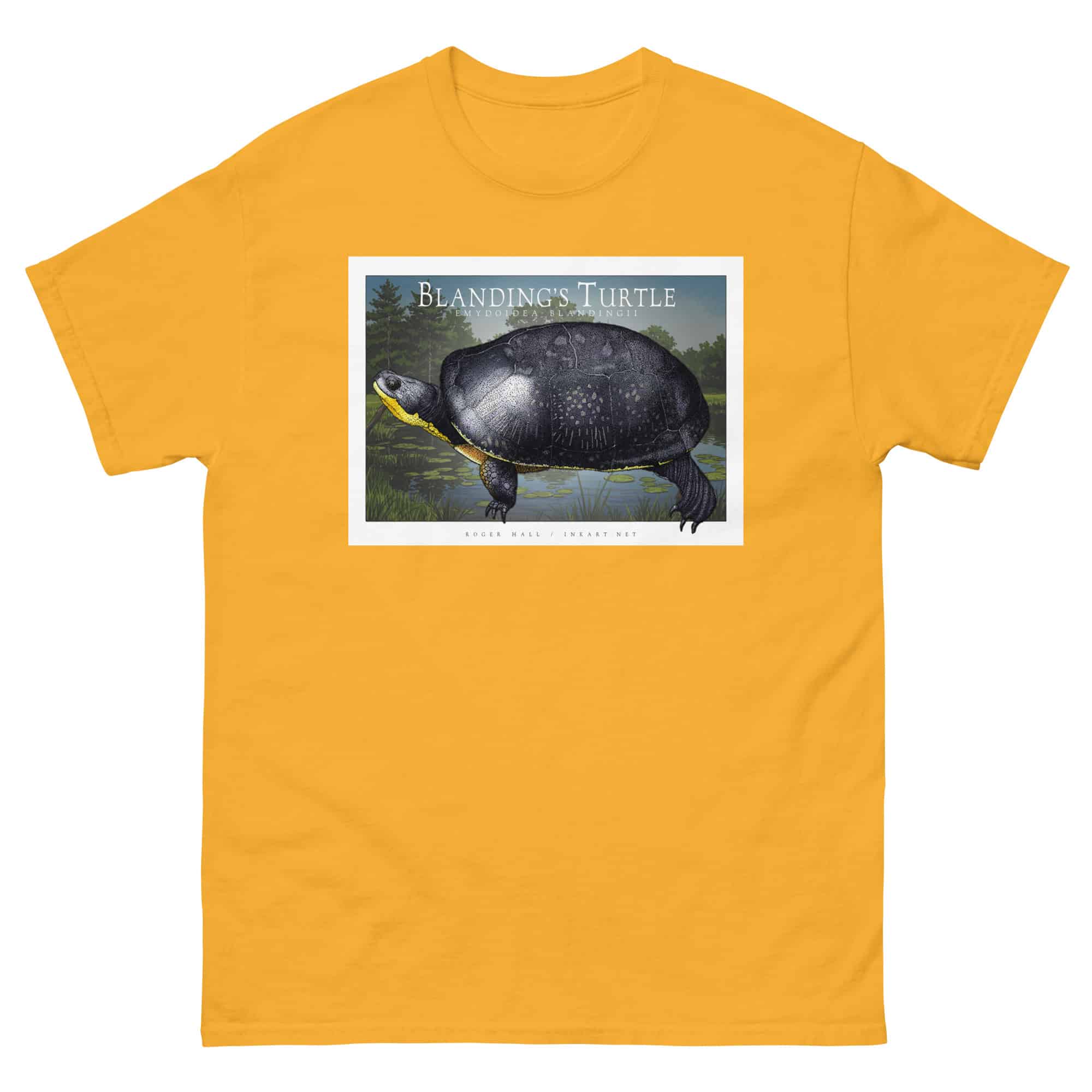 Scientifically accurate drawing of a Blanding’s Turtle (Emydoidea blandingii.) The illustration of a printed on a high-quality 100% unisex cotton t-shirt.