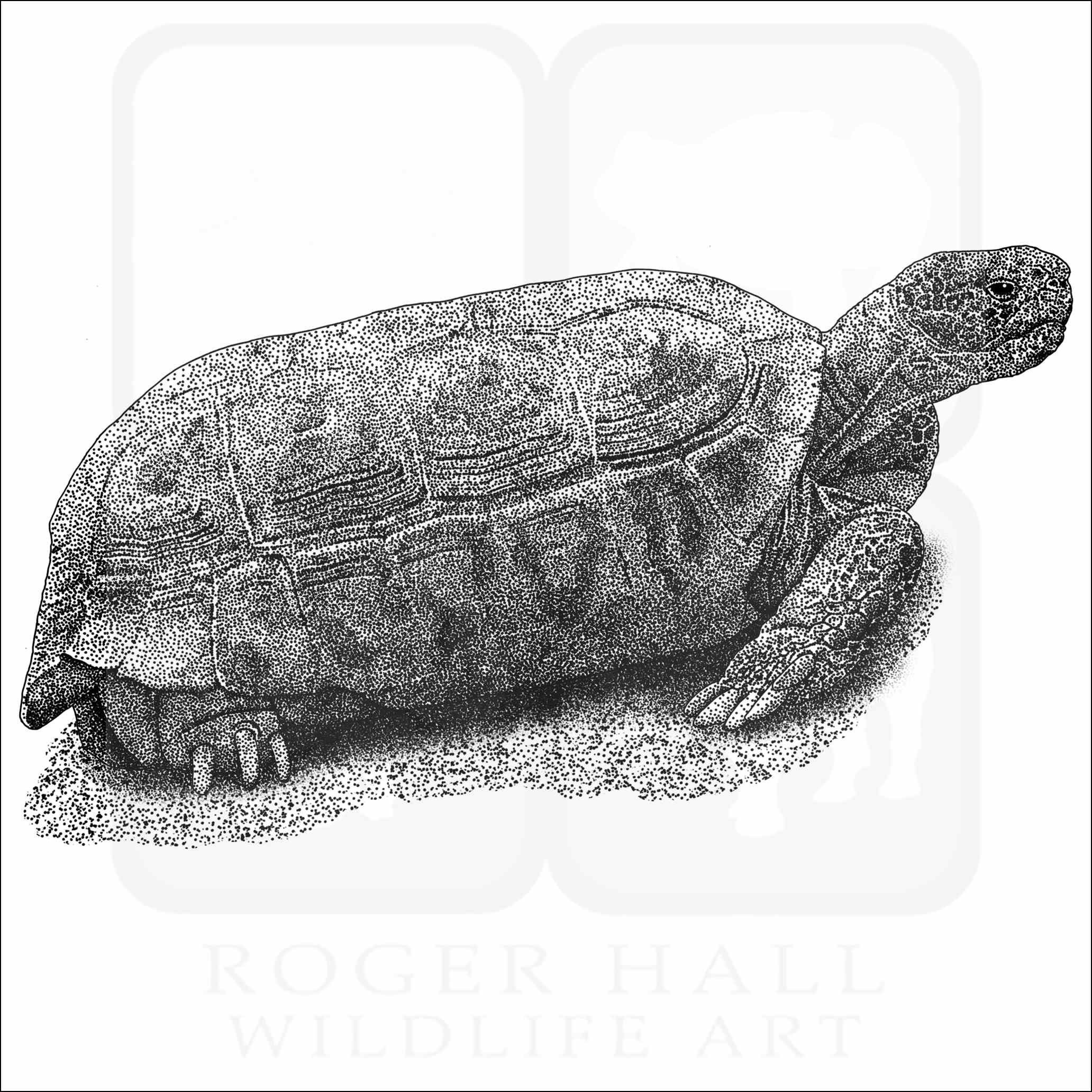 Fine art illustration of a Bolson Tortoise (Gopherus flavomarginatus.)