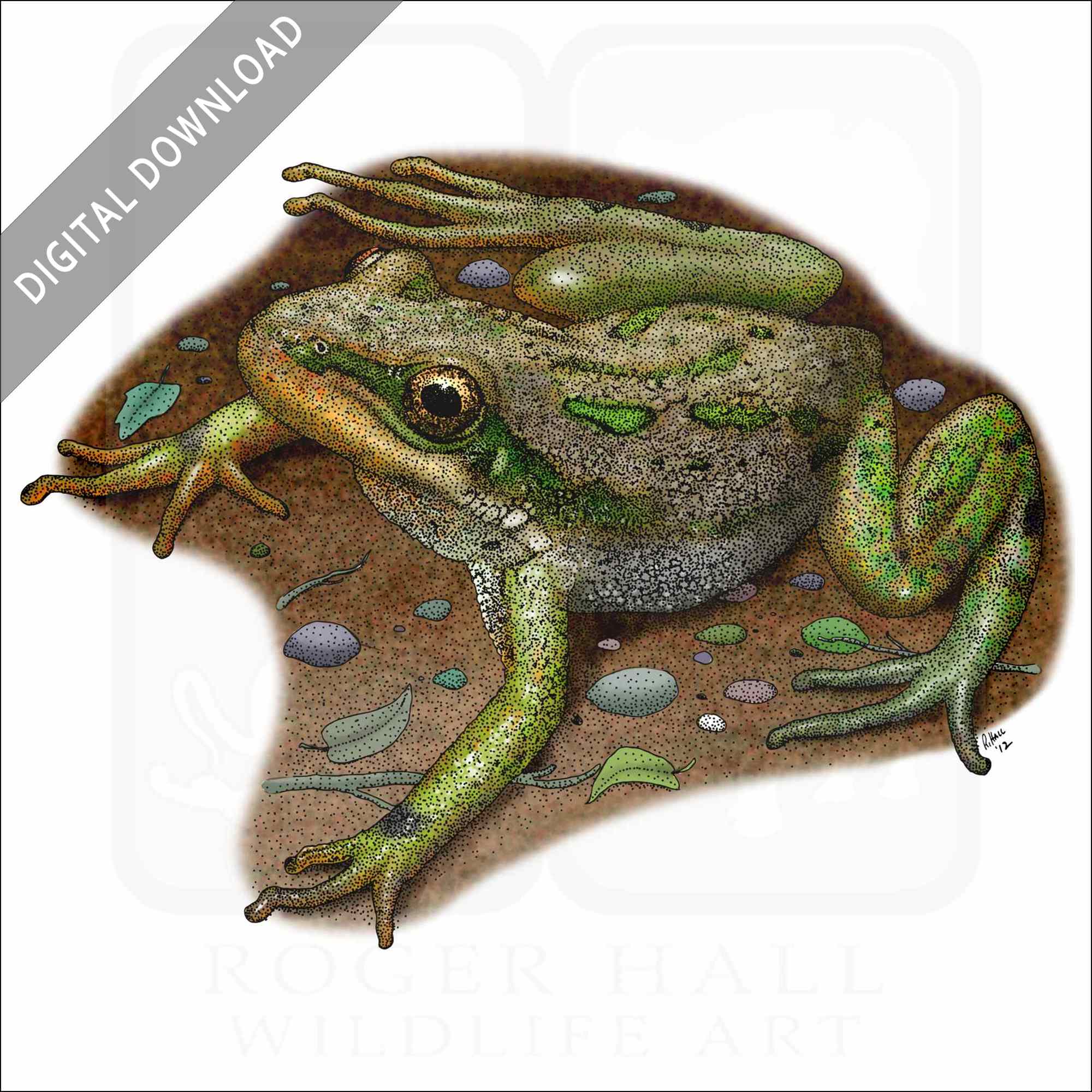 Stock art illustration of a Boreal Chorus Frog (Psittacus erithacus.) The illustration is available in black and white or color for immediate download.