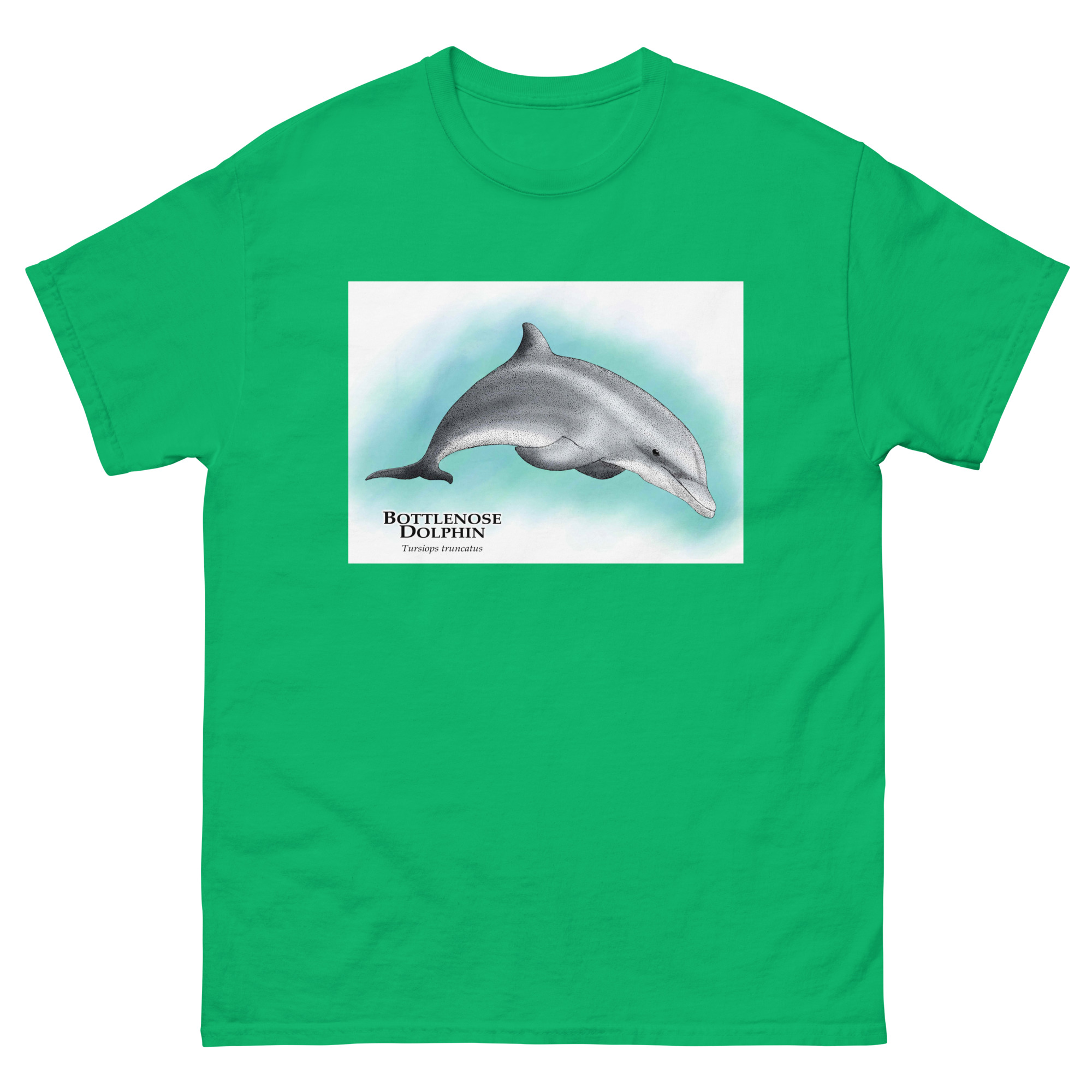 Fine art illustration of a Bottlenose Dolphin (Delphinus truncatus) printed on a high-quality 100% unisex cotton t-shirt.