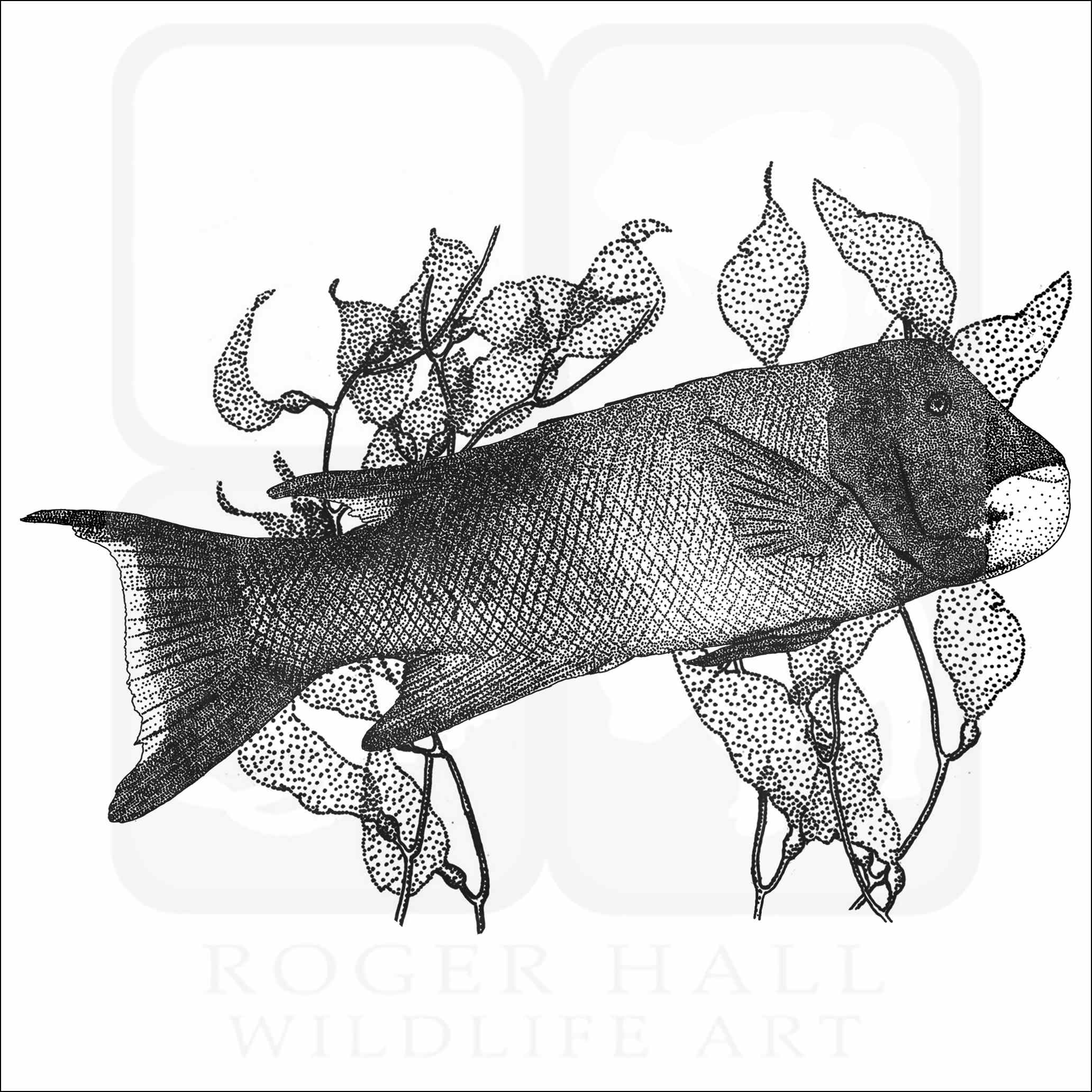 Fine art illustration of a California Sheephead (Semicossyphus pulcher.)