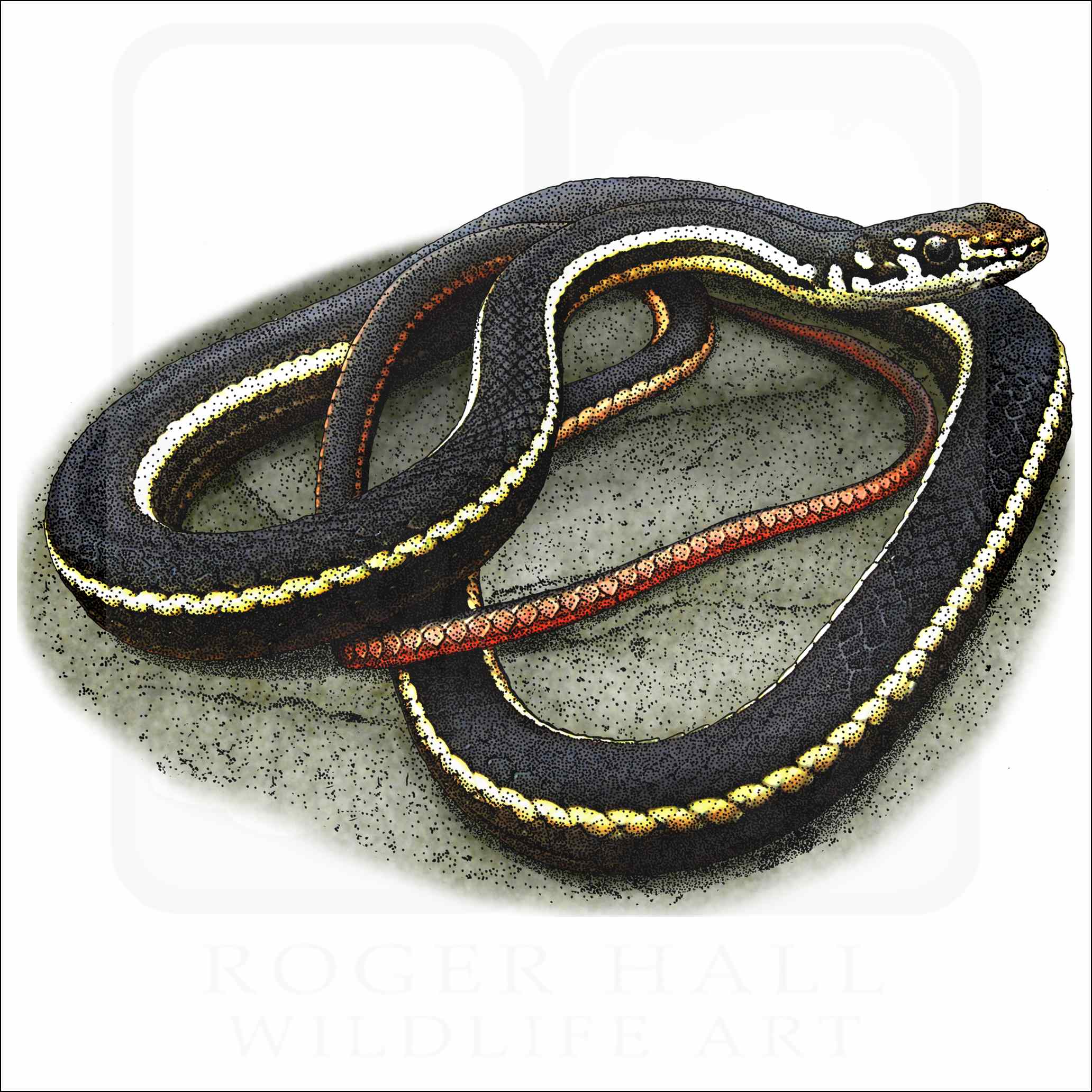 Although with a dark-colored snake like this, it is a little easier to hide inaccuracies in the snake’s anatomy, it is very important to me to make sure the drawing makes sense to the viewer’s eye. The illustration is based on a photo by Jason Butler.
