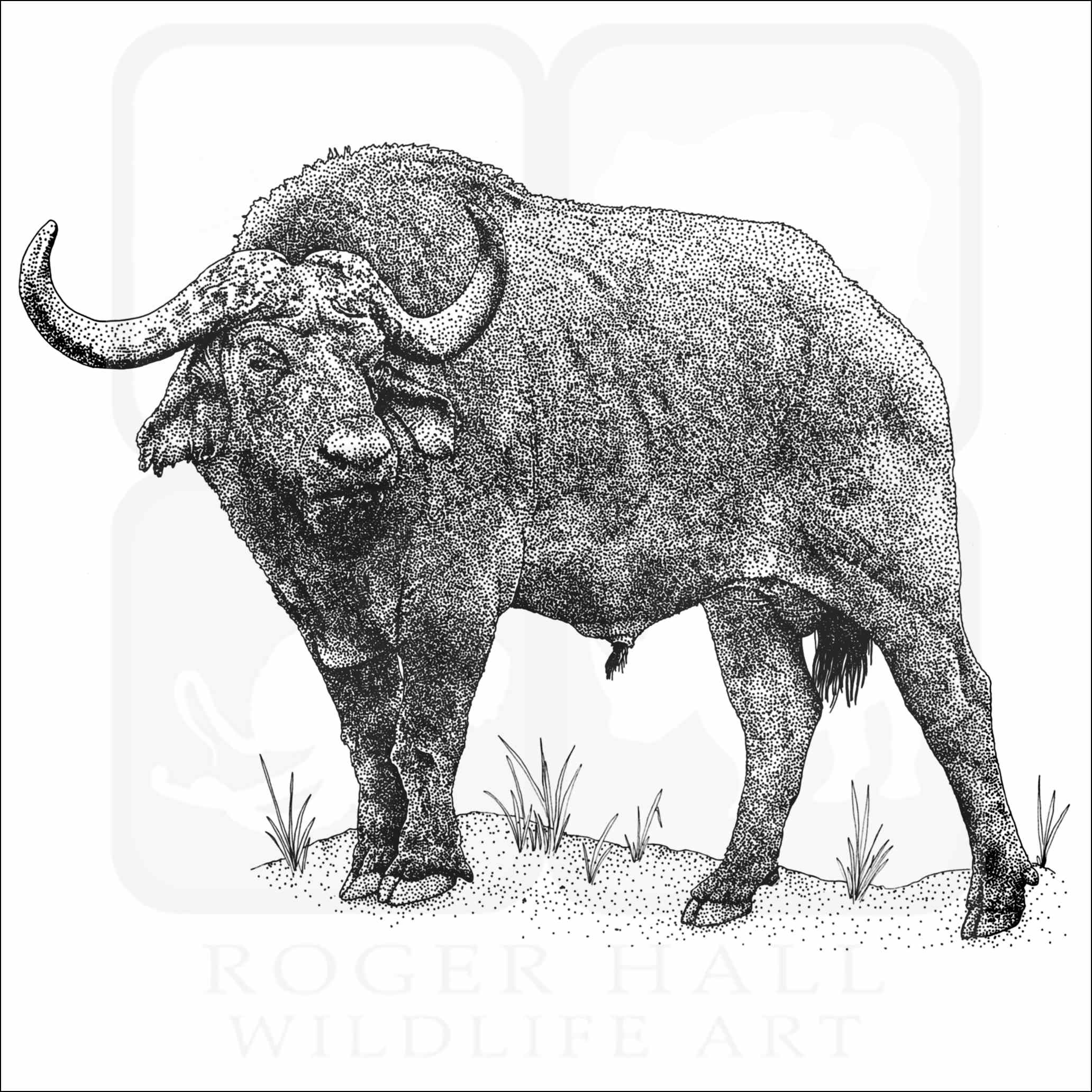 Fine art illustration of a Cape Buffalo or African Buffalo (Syncerus caffer caffer.)