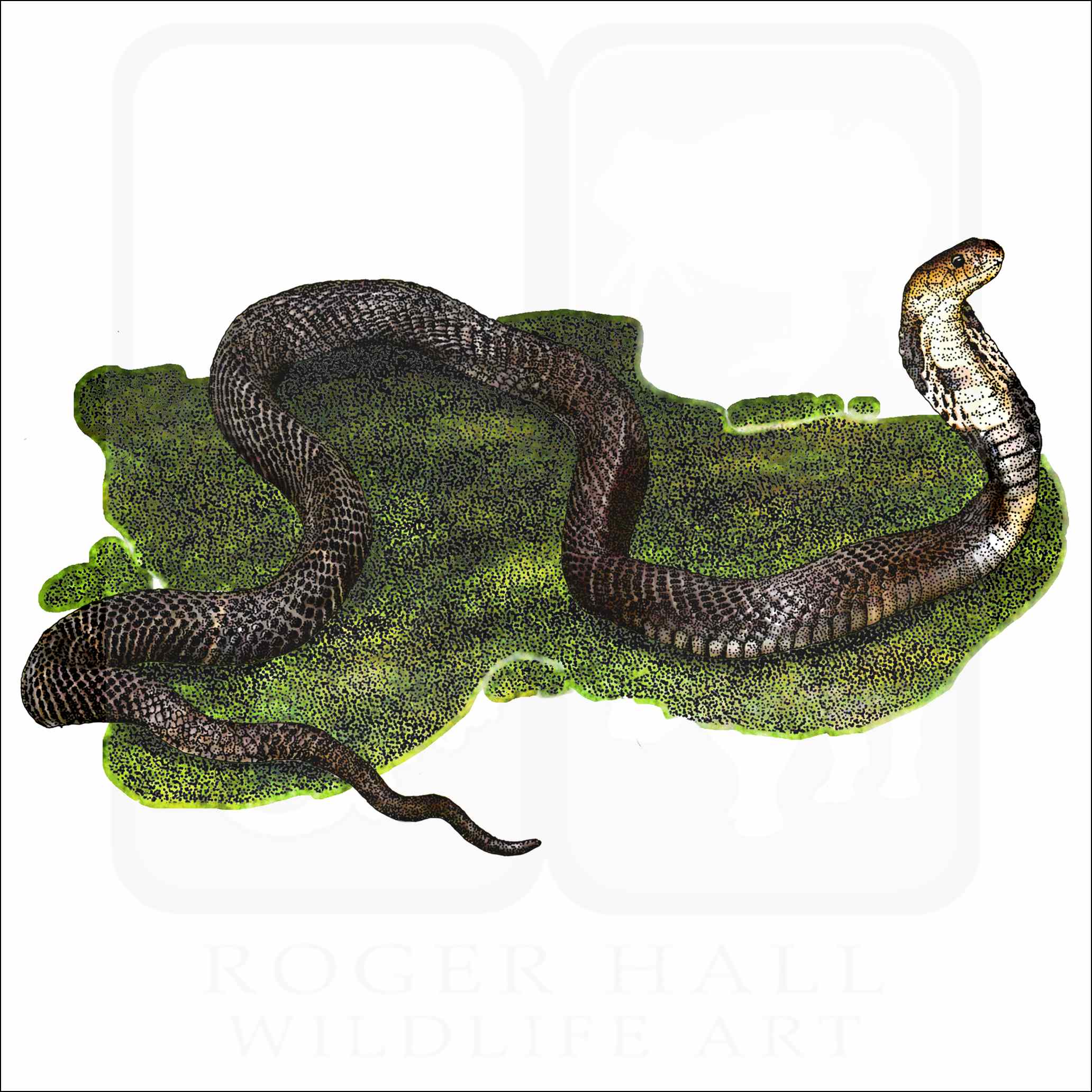 Fine art illustration of a Chinese Cobra (Naja atra.)
