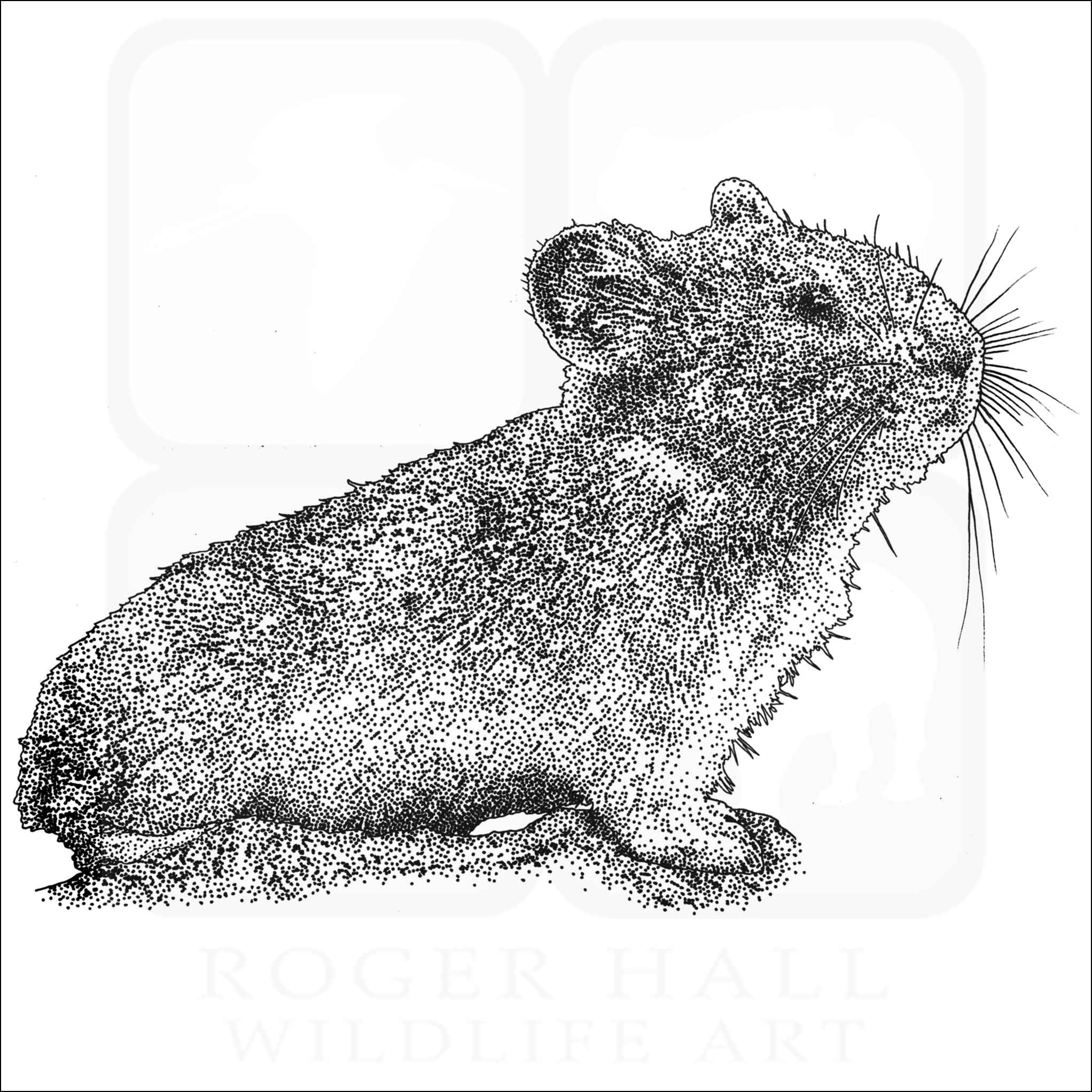 Fine art illustration of a Collared Pika (Ochotona collaris.) The illustration is available in black and white or color.